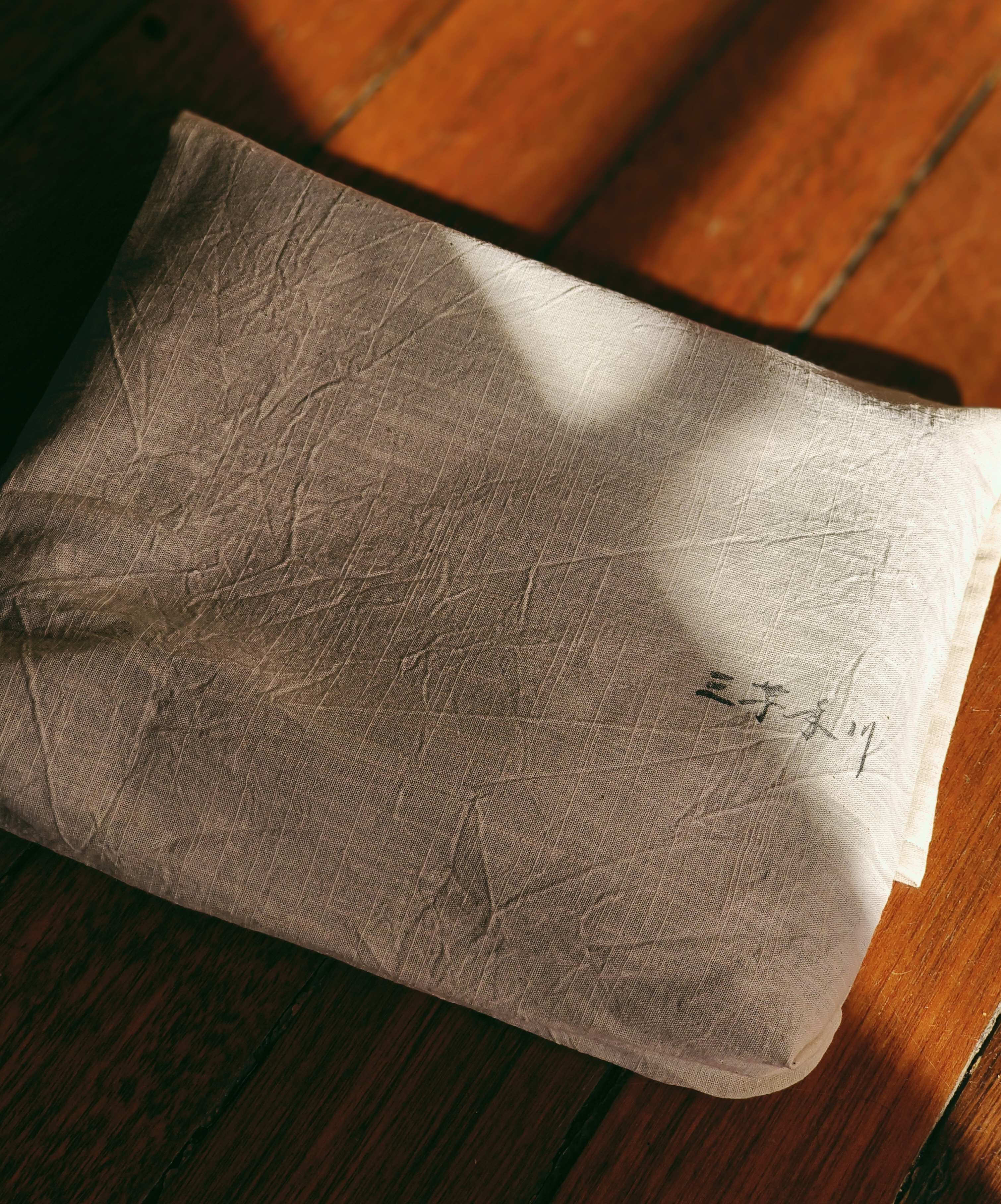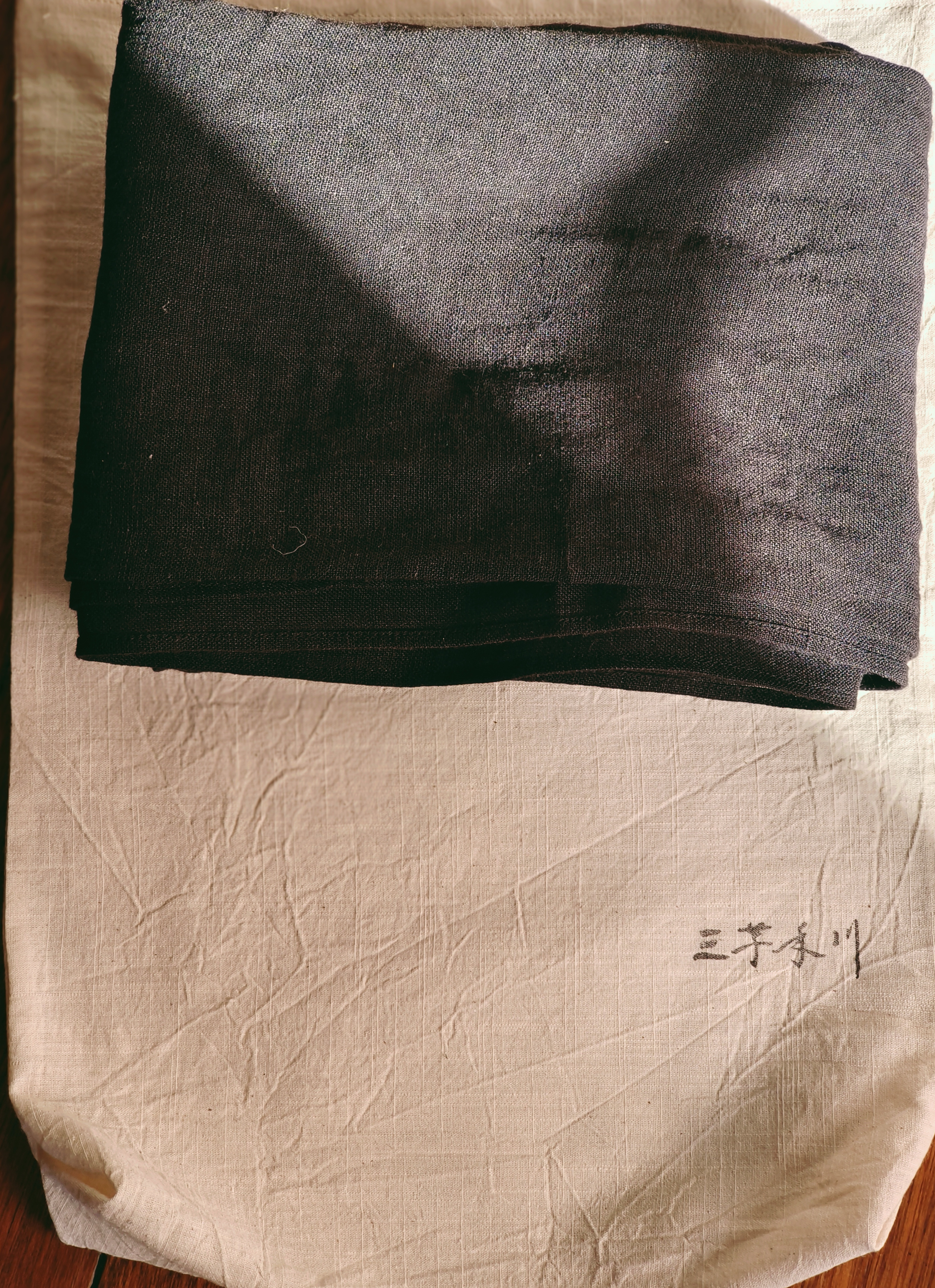 墨黑色,砂洗纯亚麻,低调哑光,柔软而不失筋骨,一年四季可用。