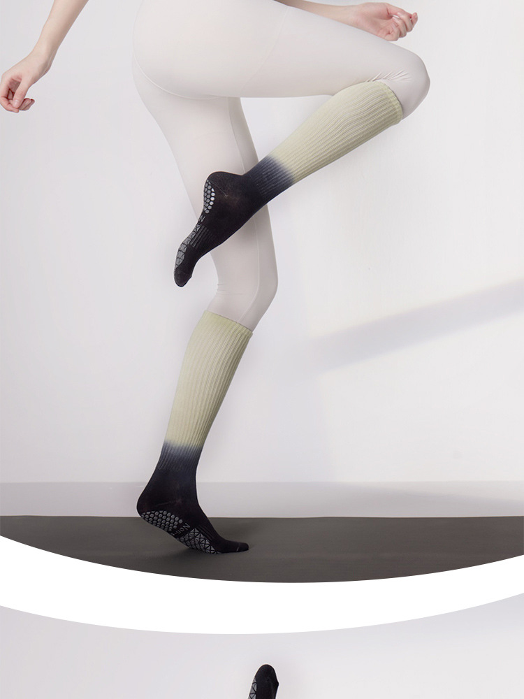 新款小腿扎染渐变防滑普拉提袜子运动袜长筒瑜伽袜子 日系FT 00