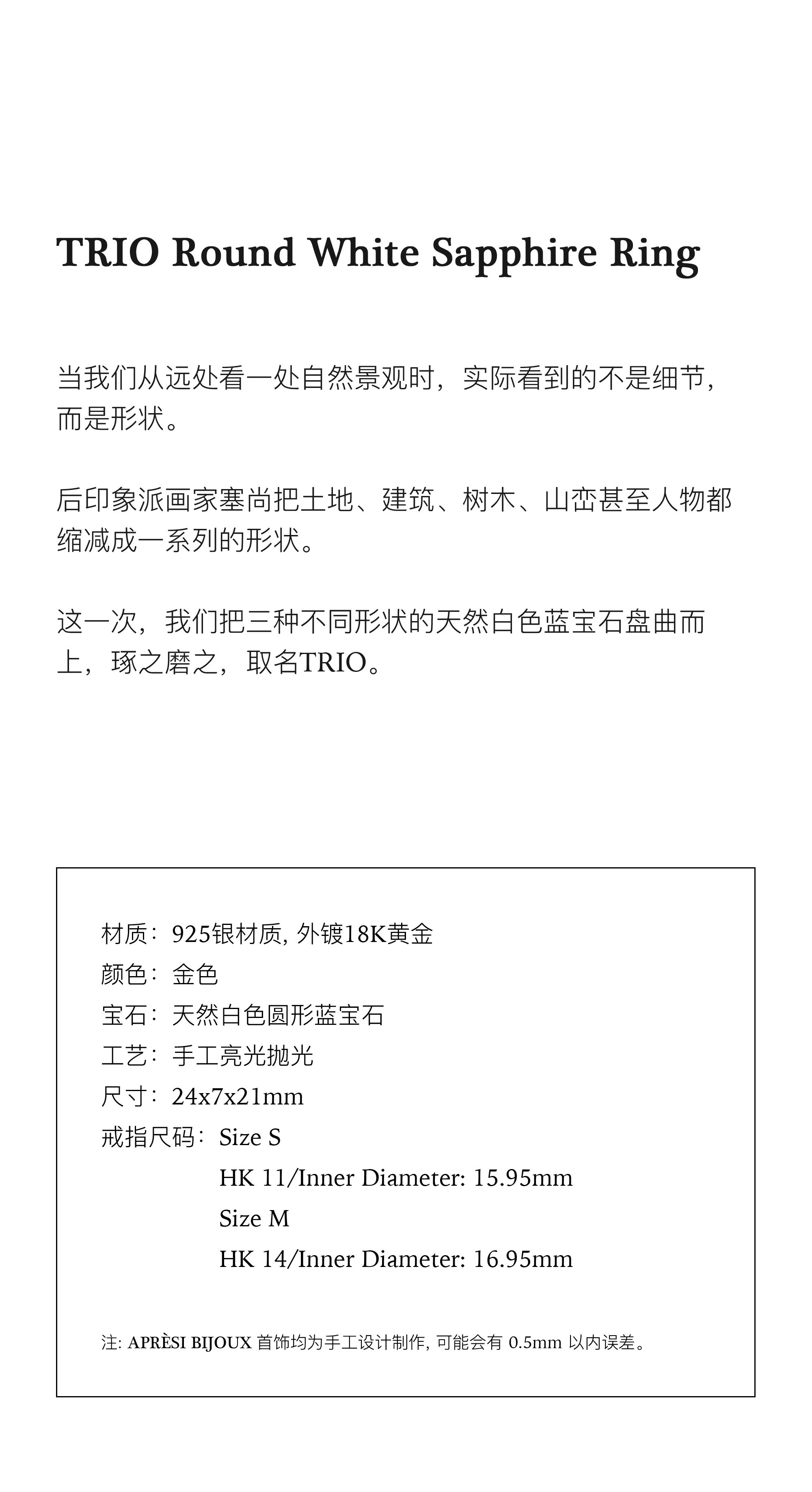 APRESI|TRIO Round White Sapphire Ring [天然白色圆形蓝宝石戒指]