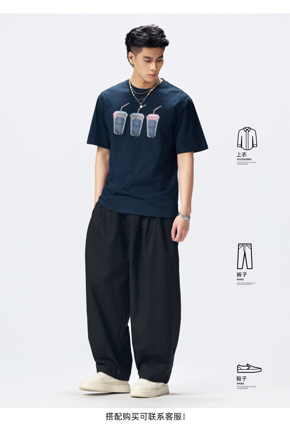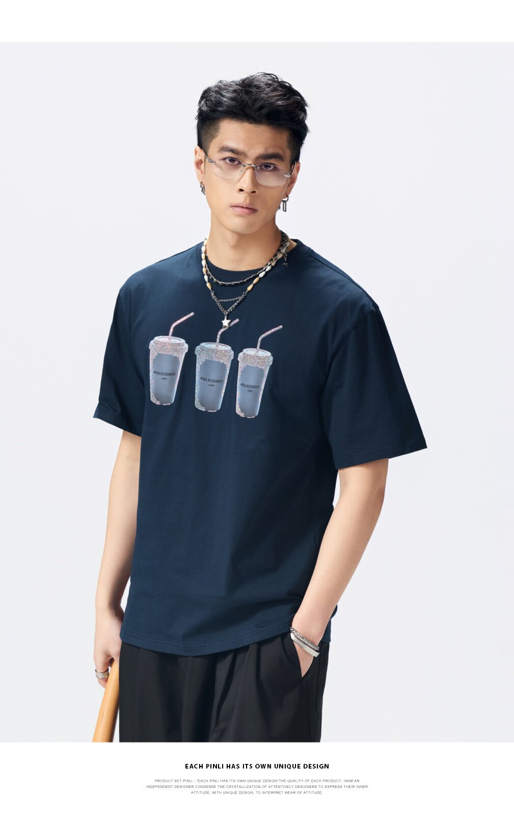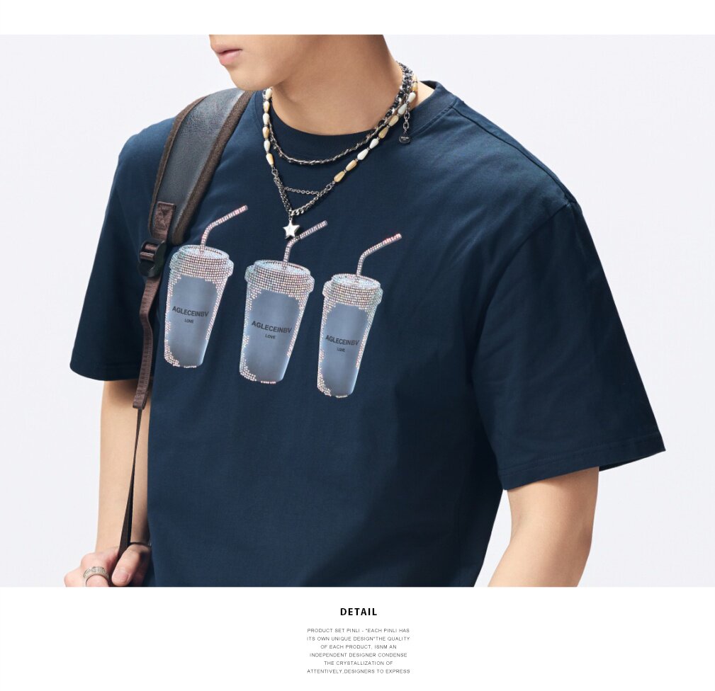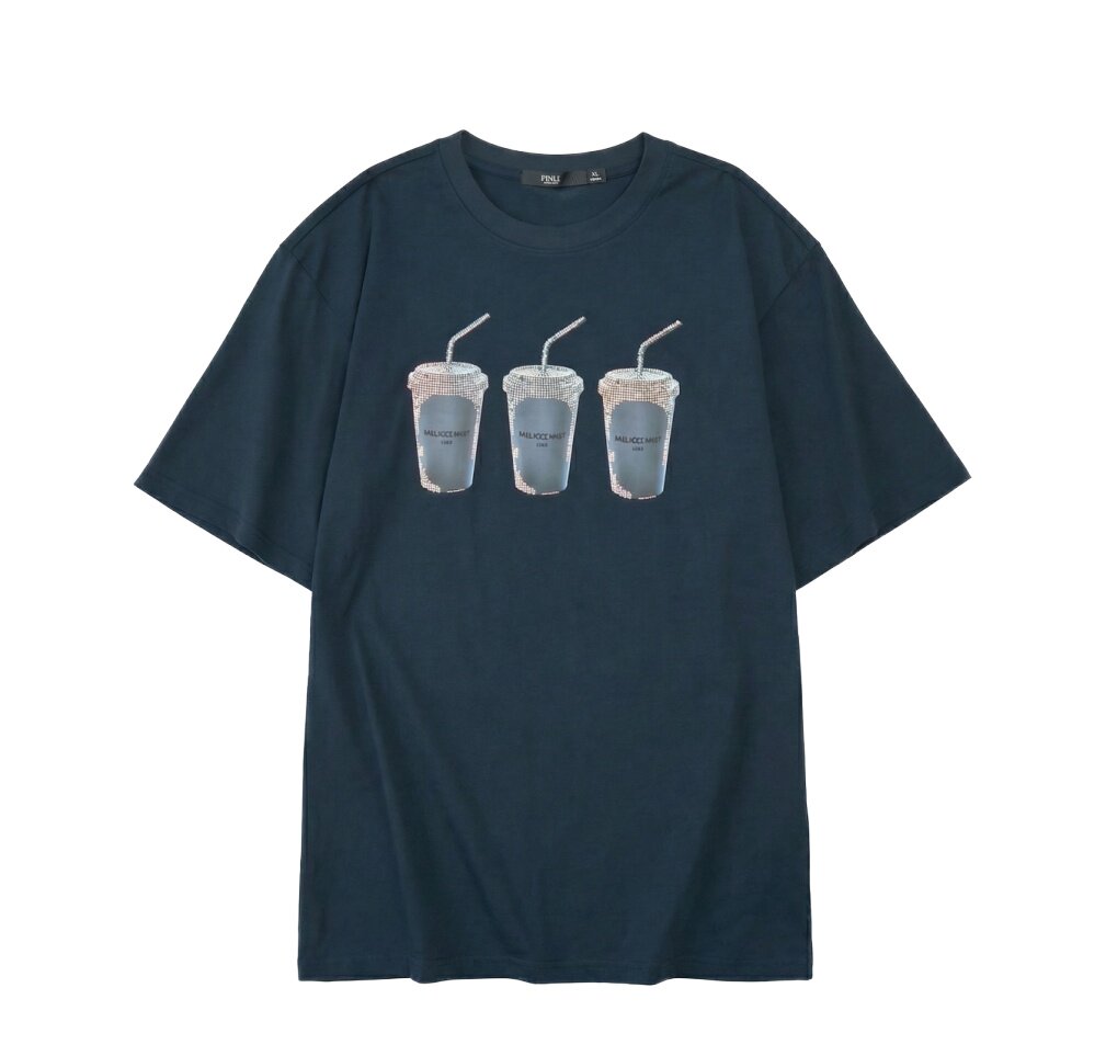 PINLI品立2026夏季新款印花烫钻圆领短袖T恤男士体恤潮牌上衣BG262111012