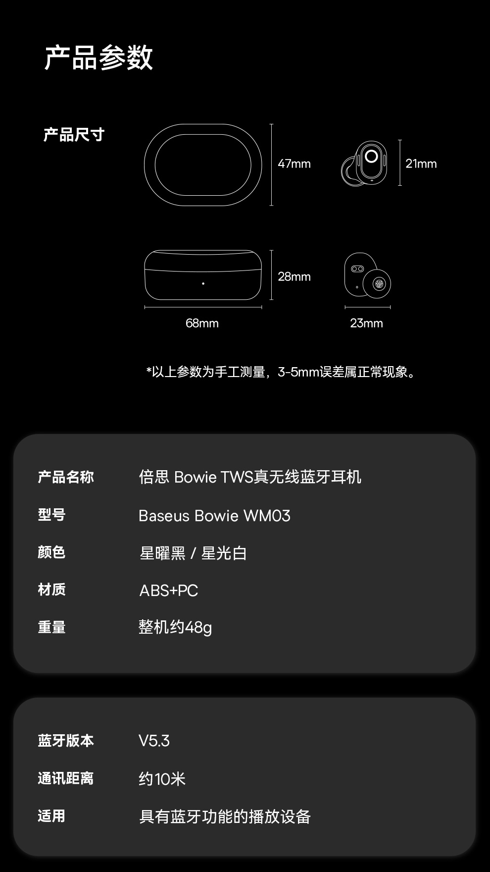 Bowie系列 WM03 TWS真无线蓝牙耳机