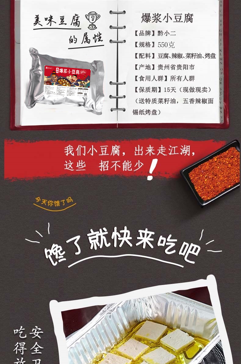 【贵州省内发货】贵州特产黔小二爆浆小豆腐 烧烤烙锅豆腐610g装(内含550g小豆腐 30ml菜籽油 30g五香辣椒面)