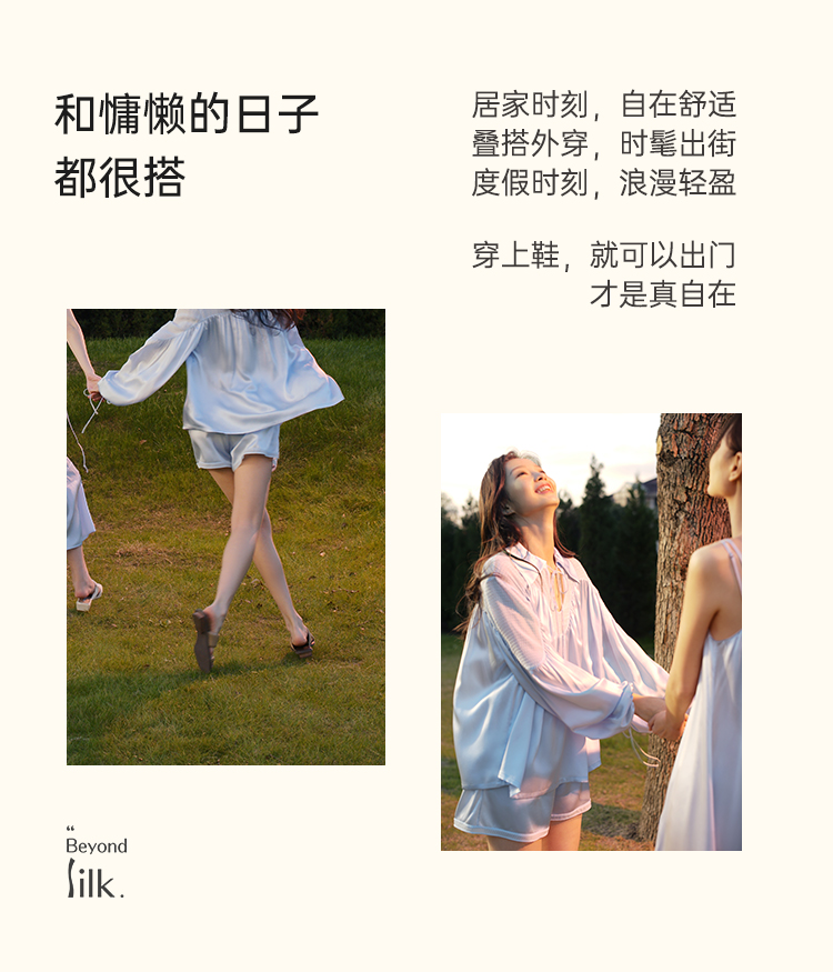 cleansilk微光系列桑罗可外穿桑蚕丝长袖套装