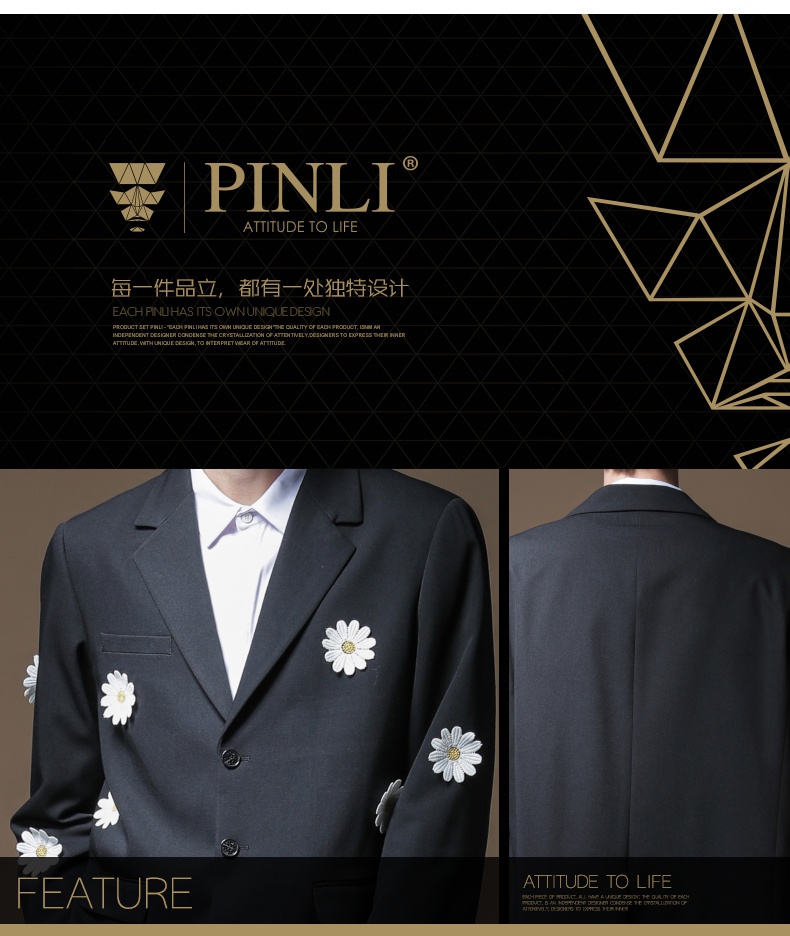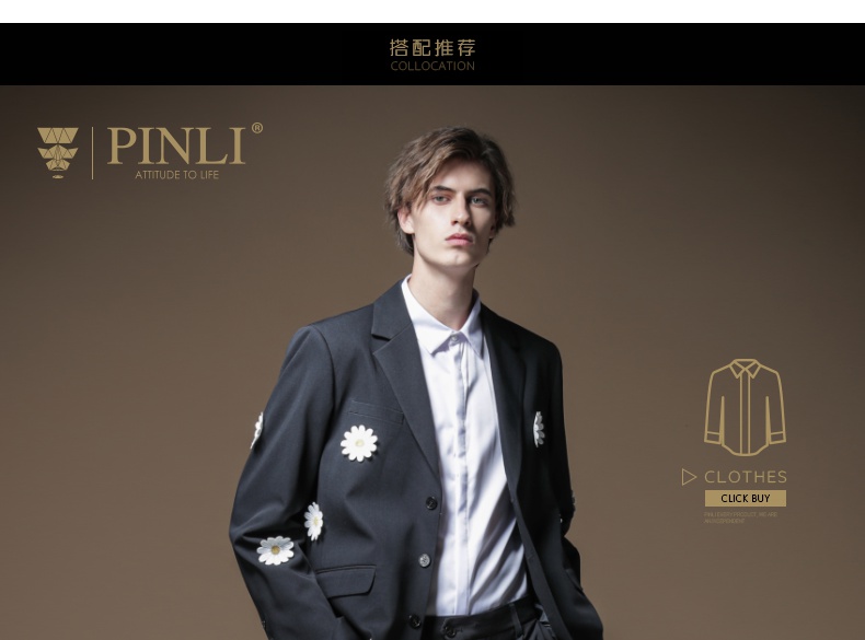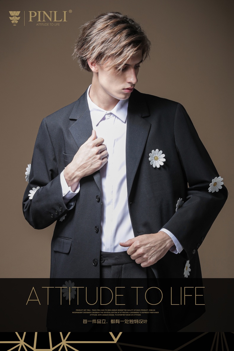 PINLI品立男装贴布绣休闲小西装西服外套B203106622