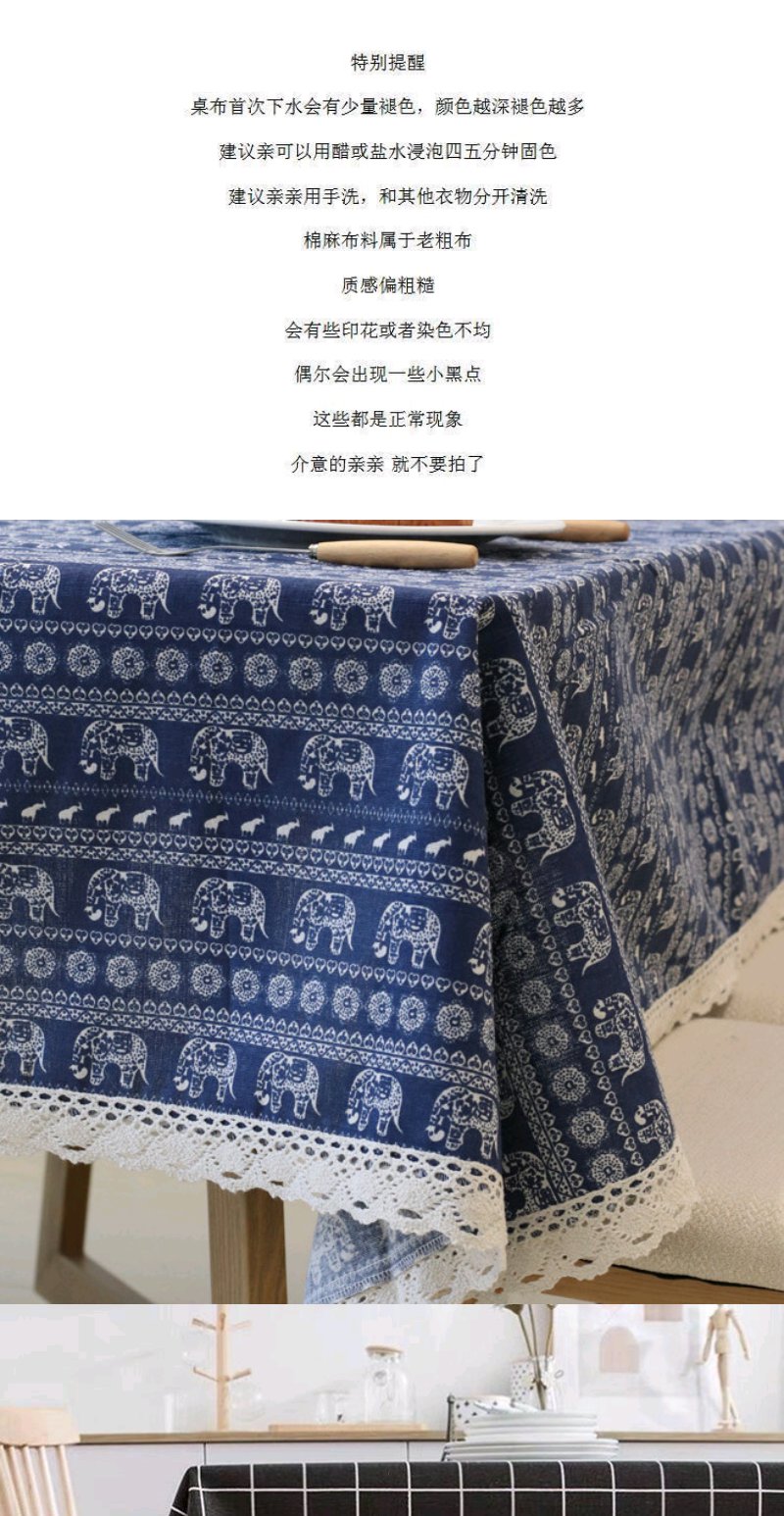小象桌布布艺棉麻田园小清新家用客厅长方形桌布