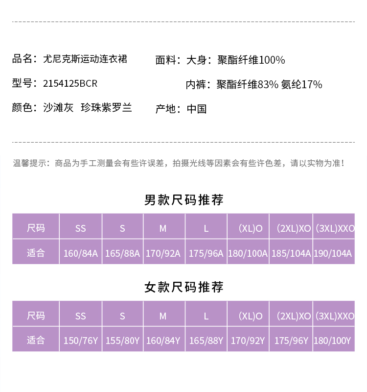 尤尼克斯 女款 训练系列 运动连衣裙 沙滩灰 2154125BCR