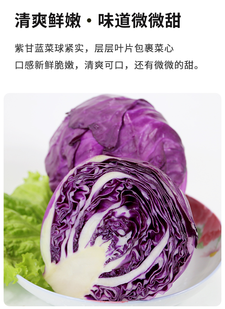 每日现砍 密农人家农家紫甘蓝 含有花青素 甜脆可口 水份充足 750g