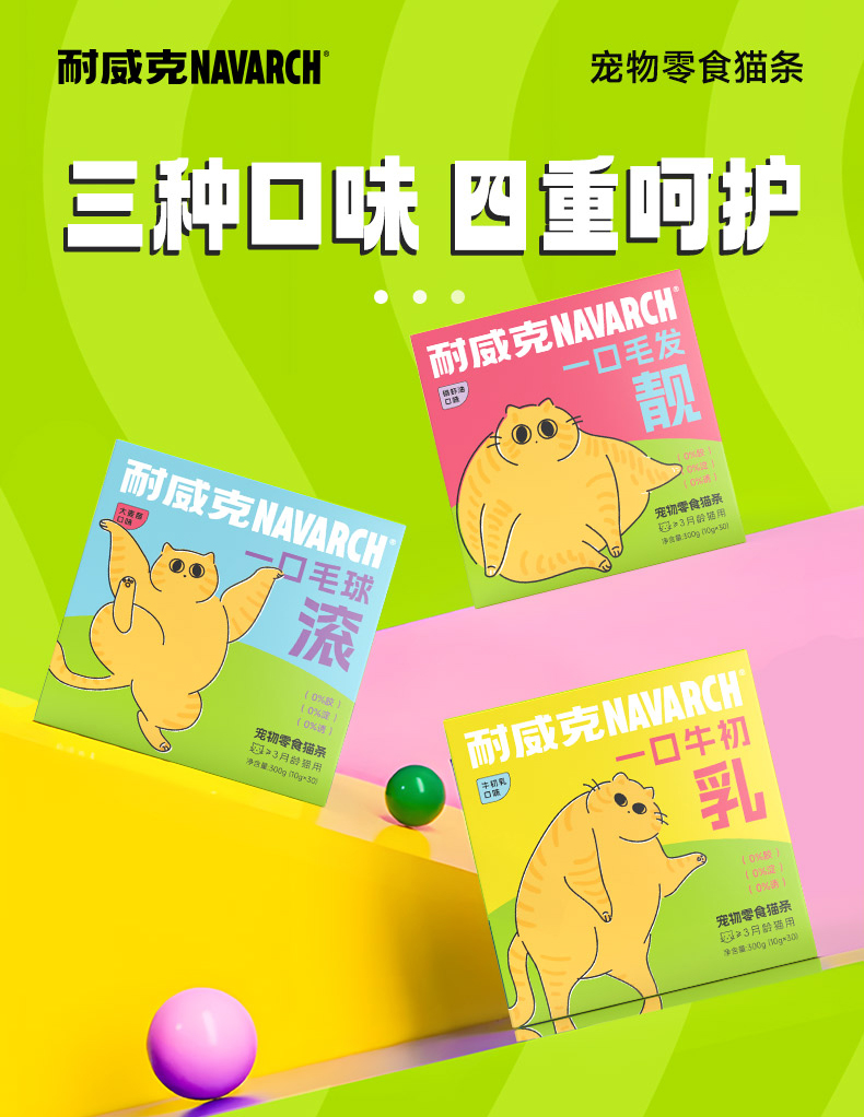 耐威克猫条零食 |胶原蛋白 |靓毛发 |温和排毛球 |美毛护肤