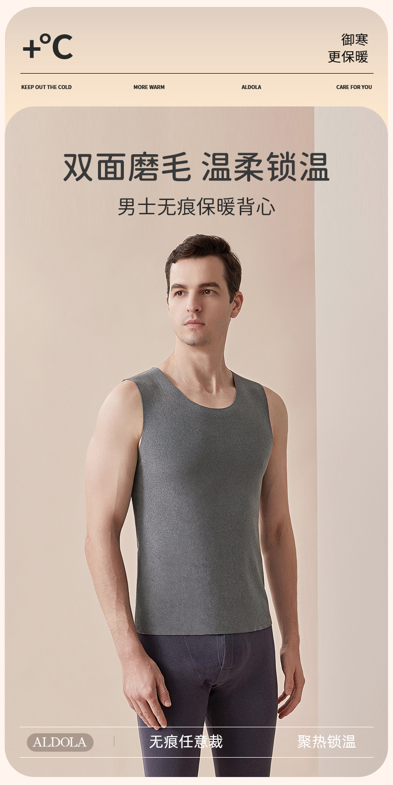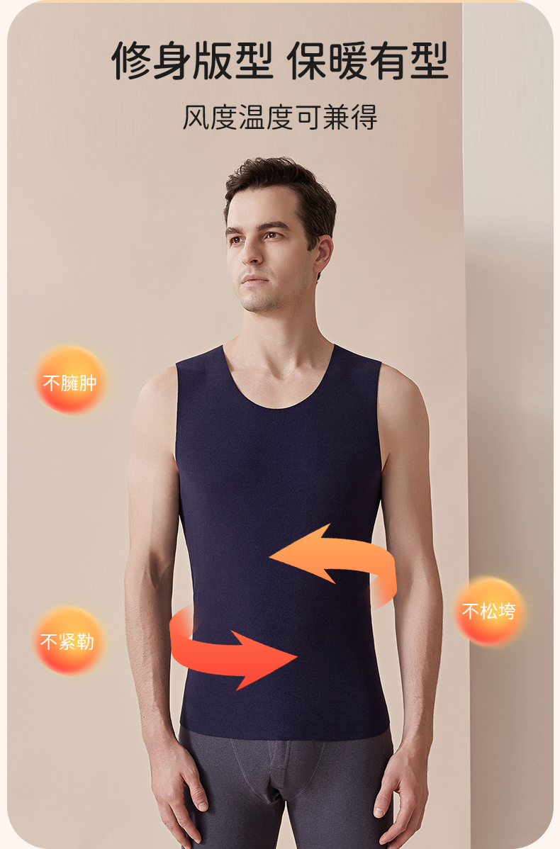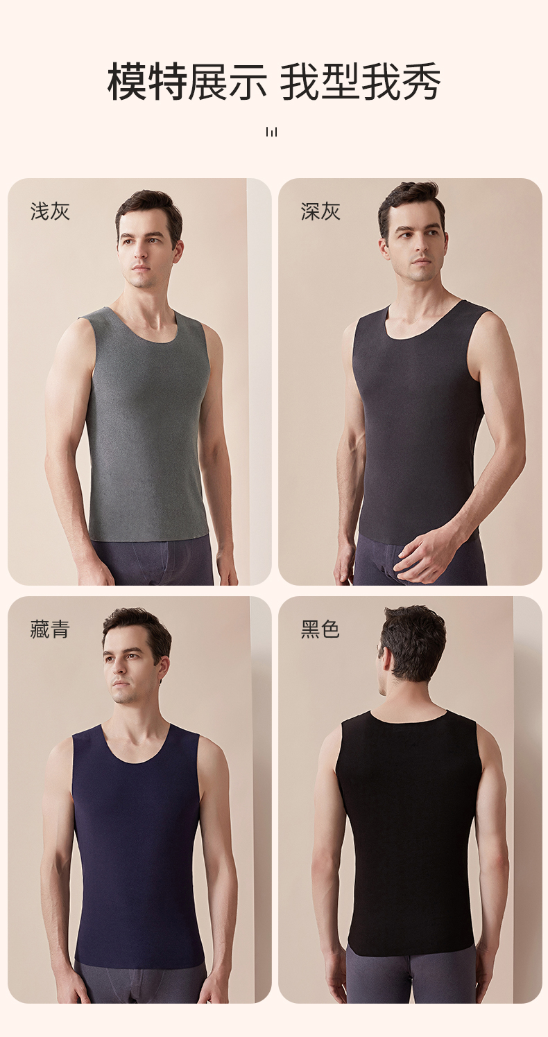 雅黛丽内衣男舒适透气双面暖绒无痕贴身打底背心男士秋冬保暖上衣