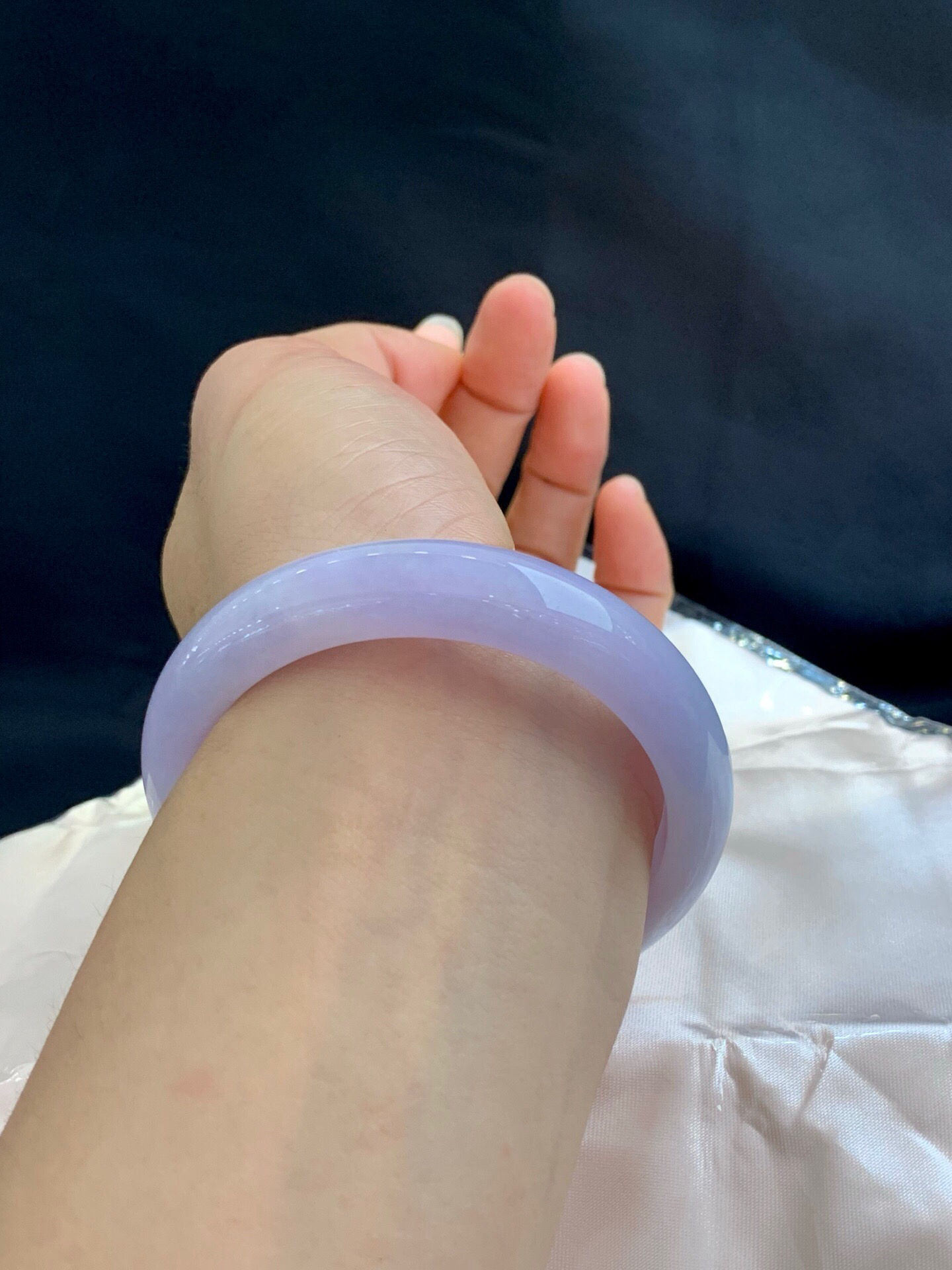 620638,56圈口,细糯化满紫正圈平安镯,粉紫色,底子细腻,色泽均匀,完美,尺寸:56-12.4-8,超值价💰14000 #优石客珠宝#香玉荟萃
