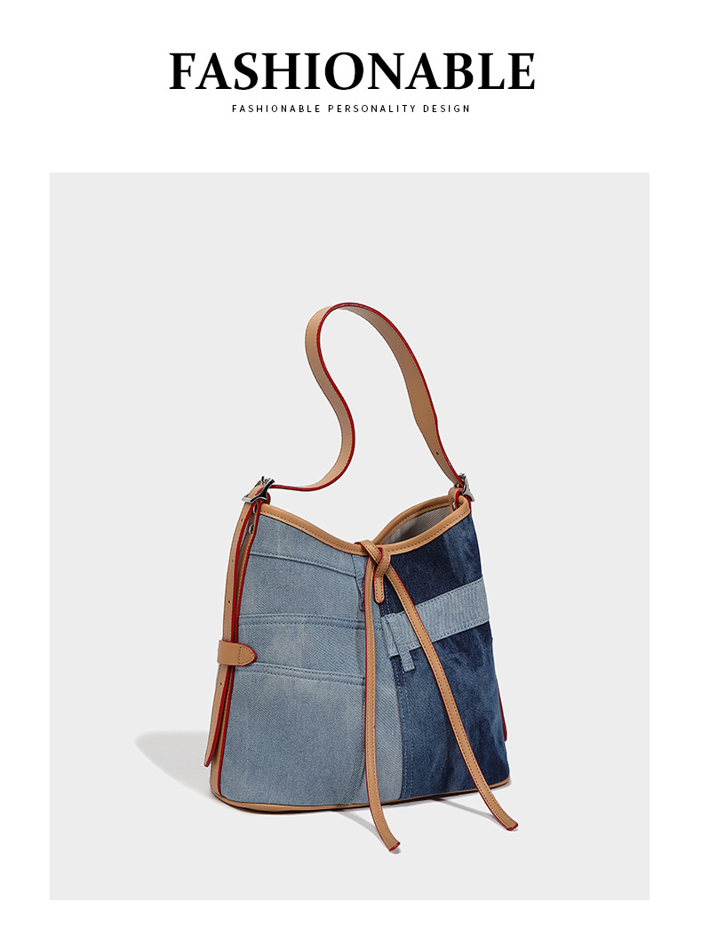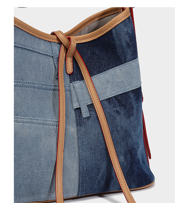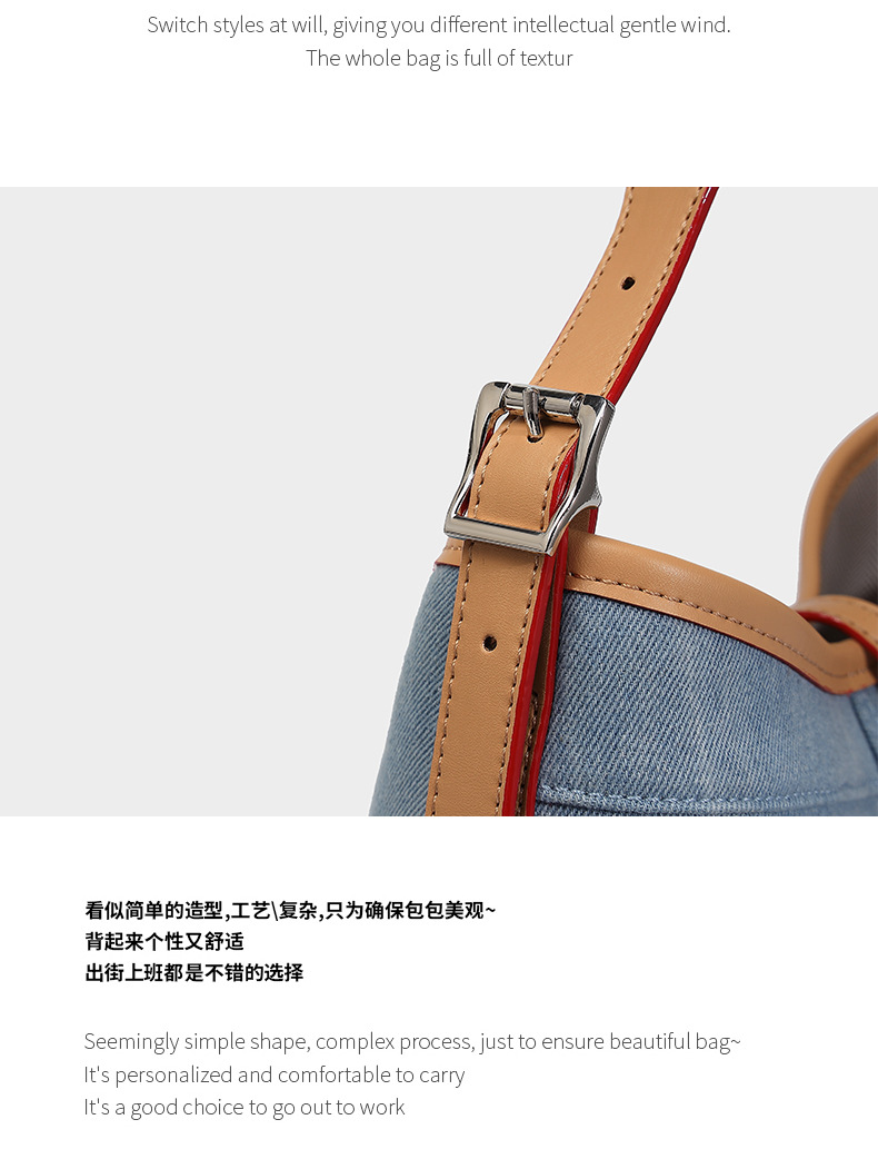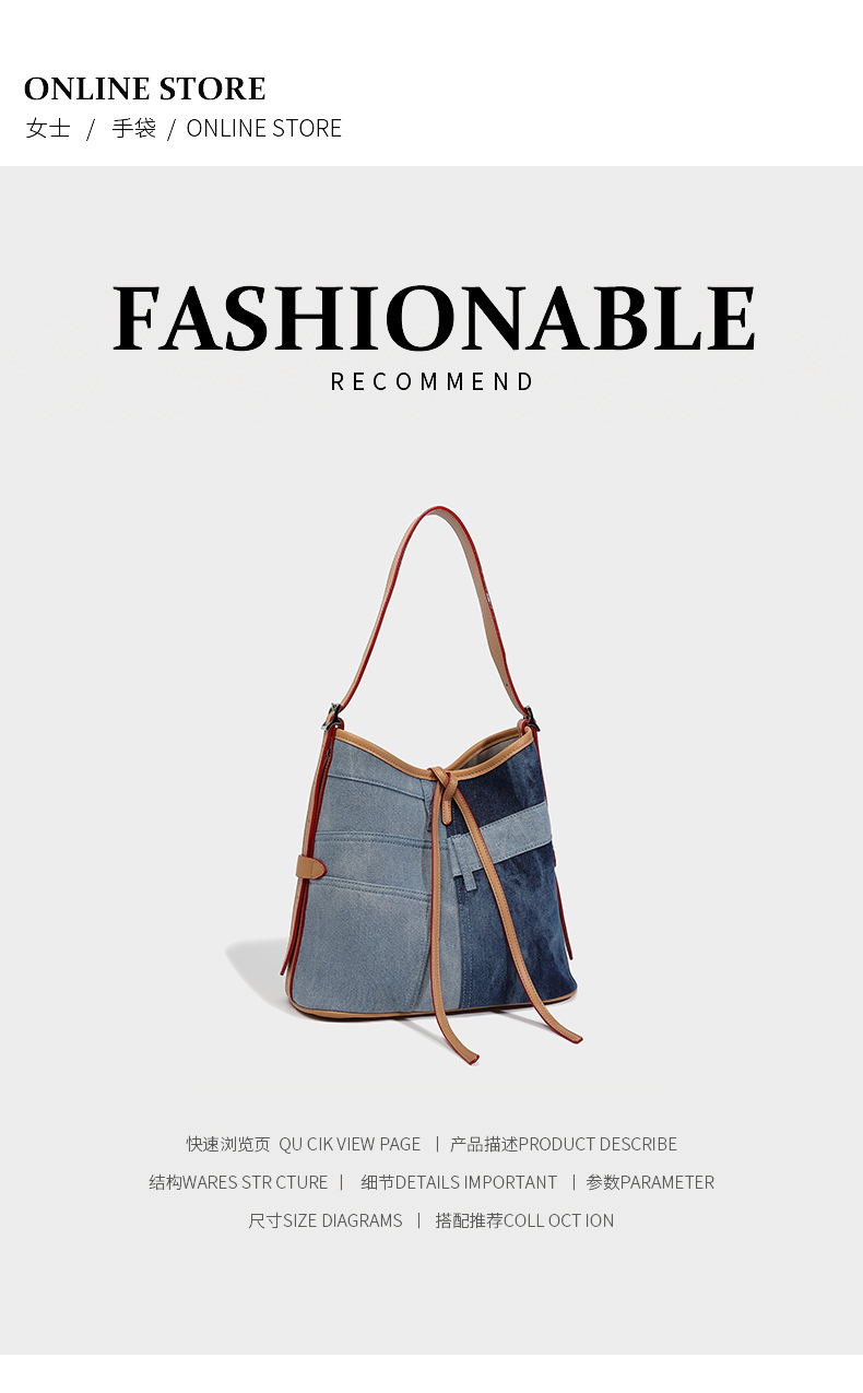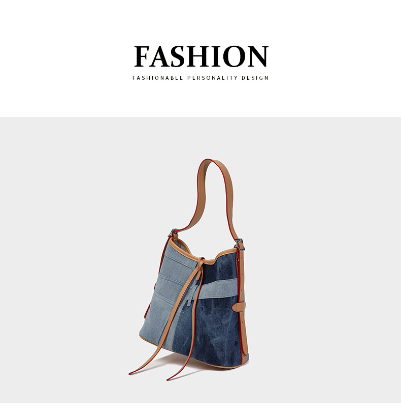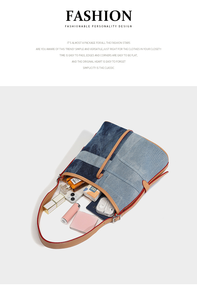 【预售3天】2025新款原创慵懒风牛仔拼接托特包大容量通勤单肩手提包YJ8185
