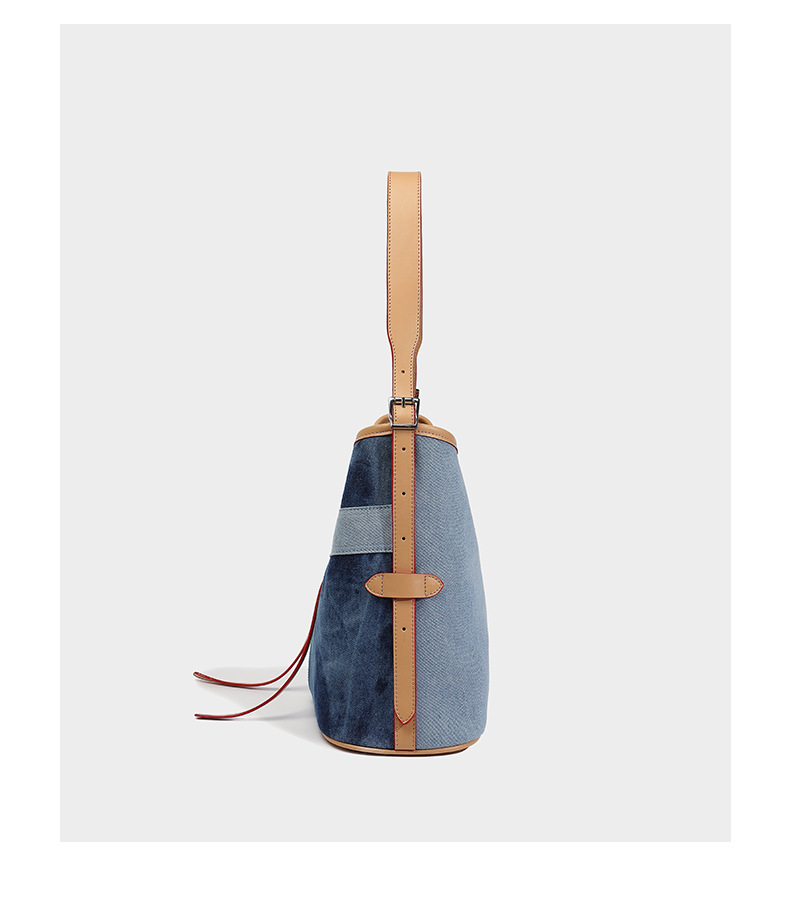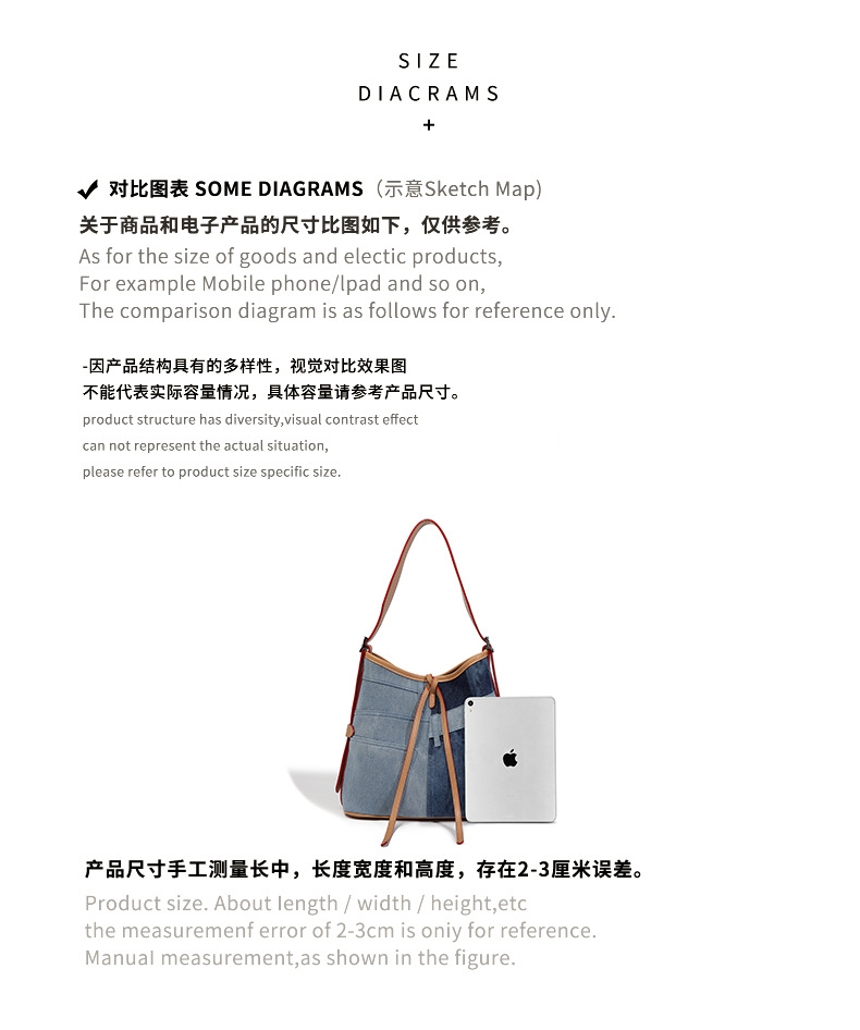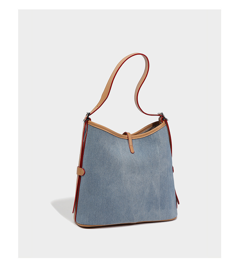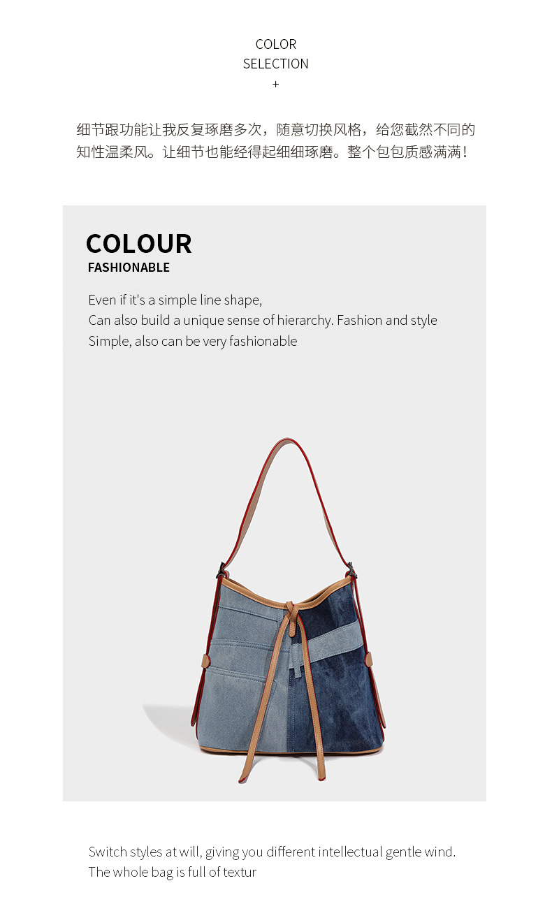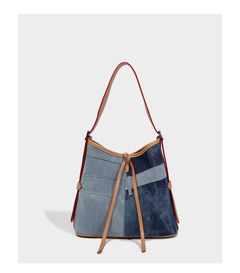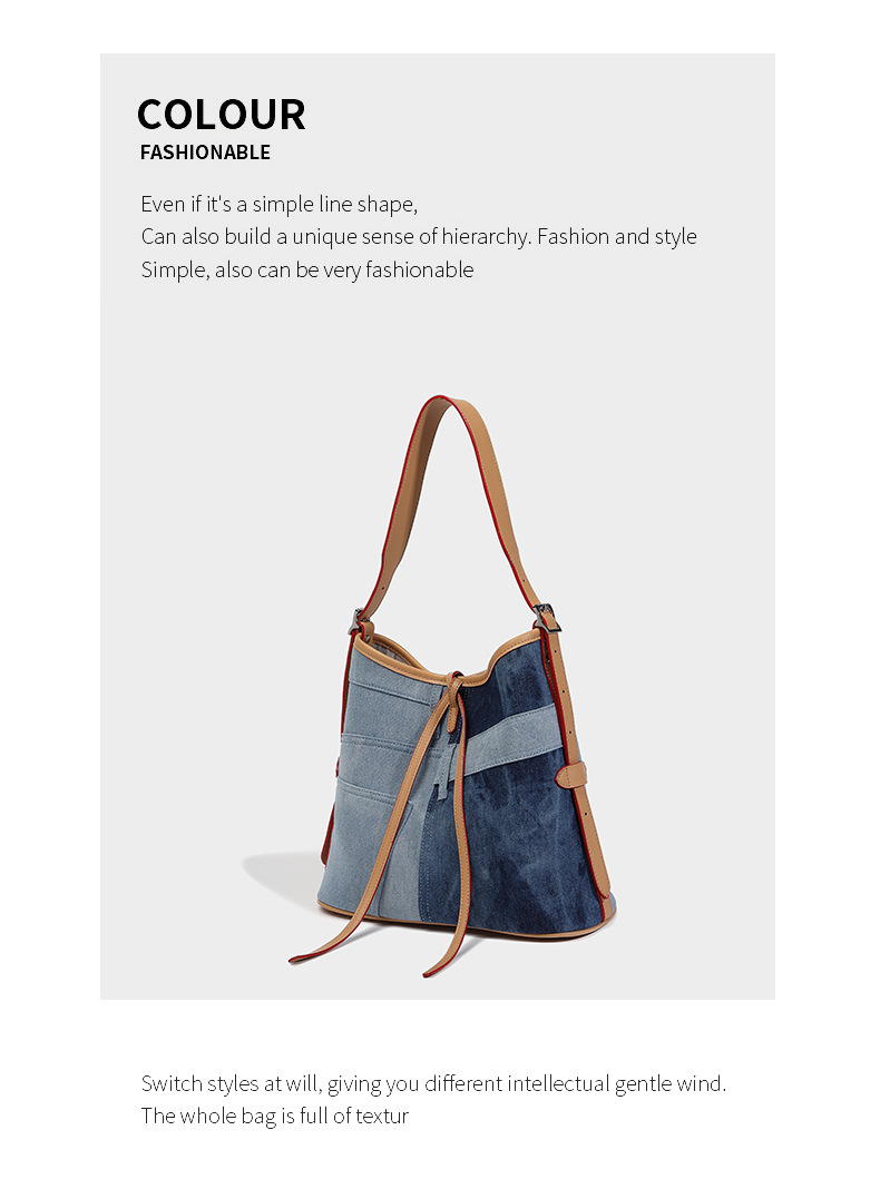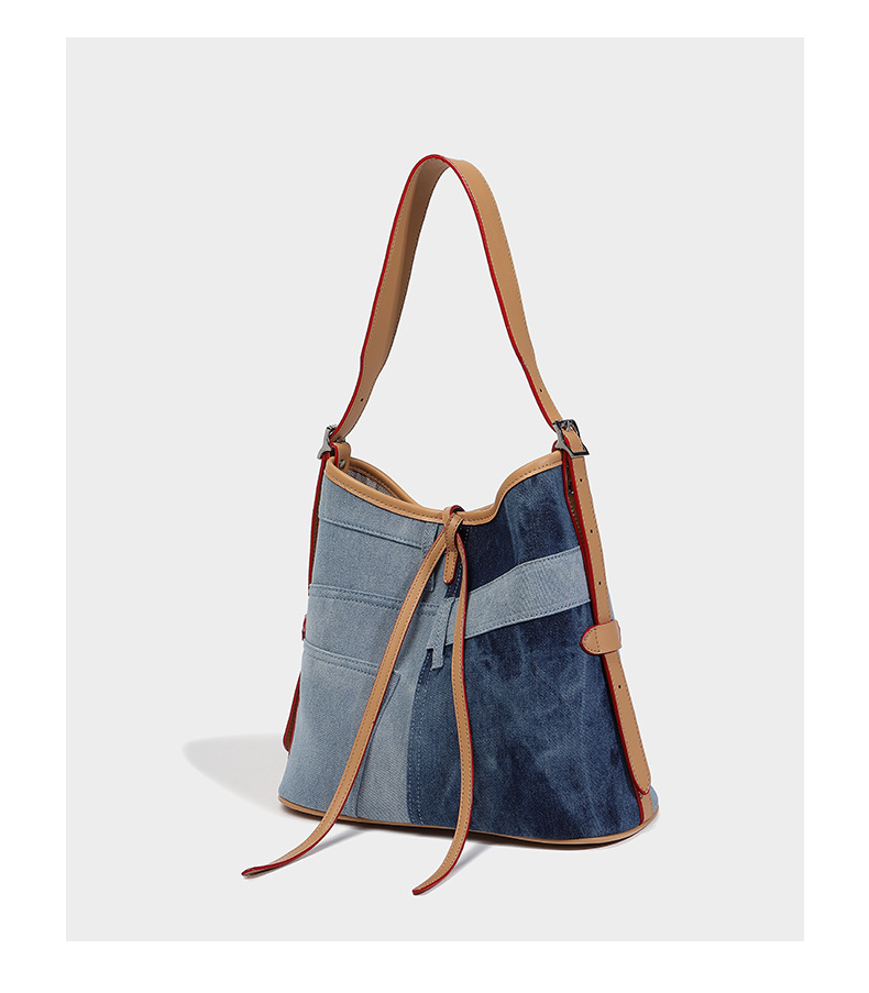 【预售3天】2025新款原创慵懒风牛仔拼接托特包大容量通勤单肩手提包YJ8185