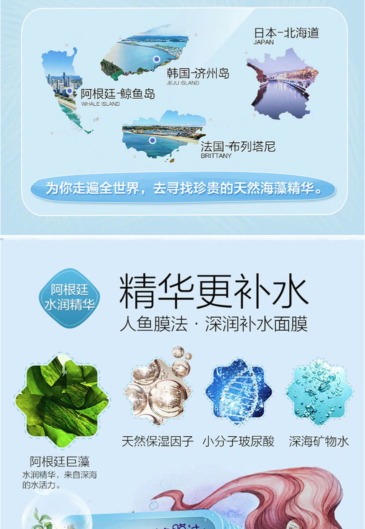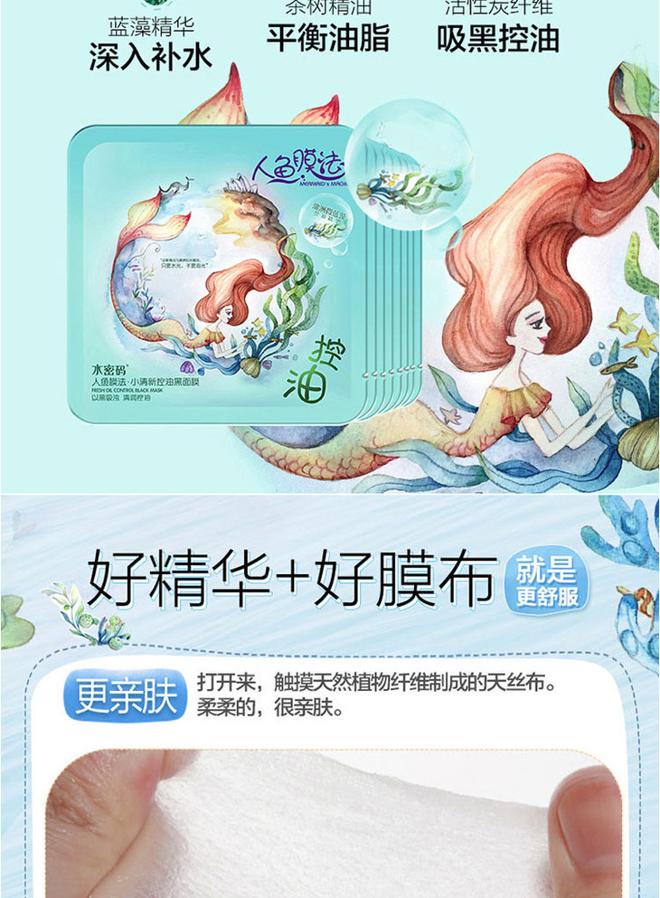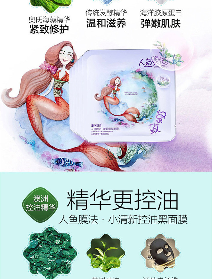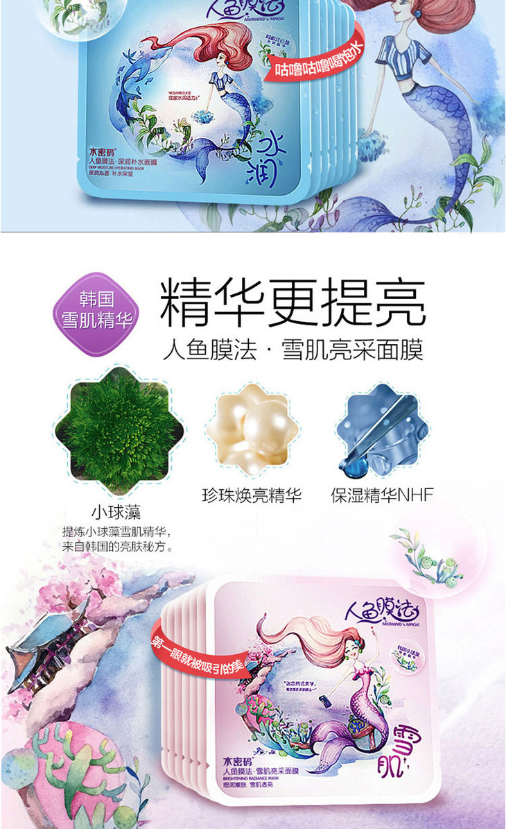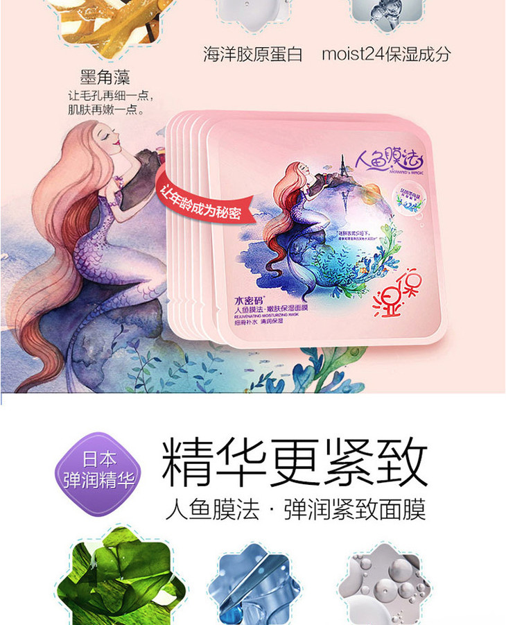 【面膜】。水密码人鱼面膜21片礼盒装补水保湿面膜