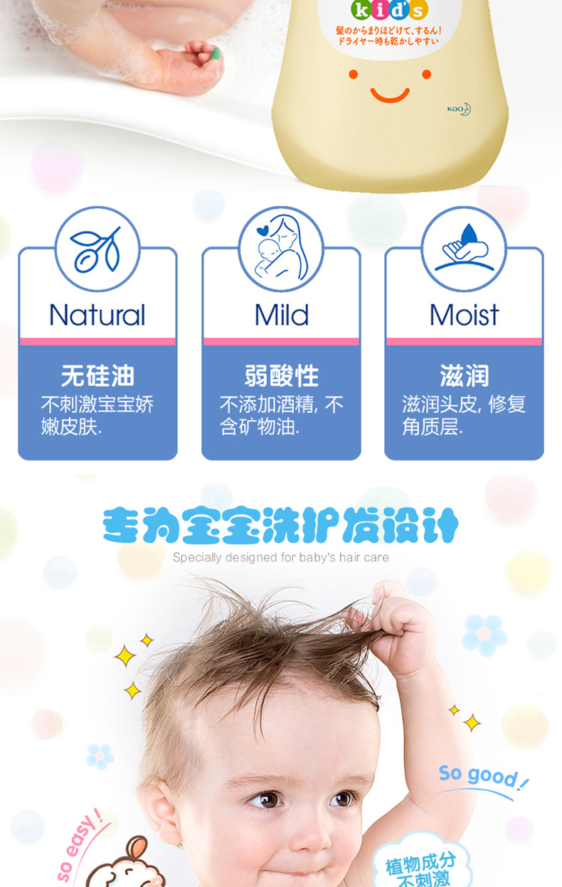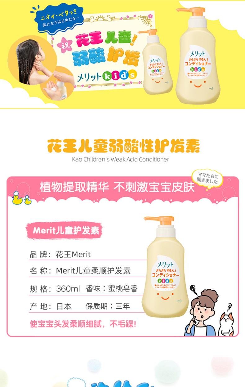 日本kao花王儿童护发素乳无硅360ml