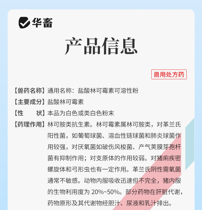 华畜兽药 盐酸林可霉素可溶性粉 采用进口助溶剂 吸收更好 药效更强