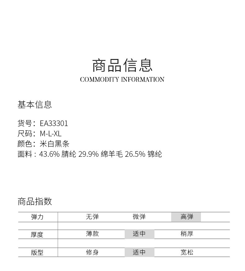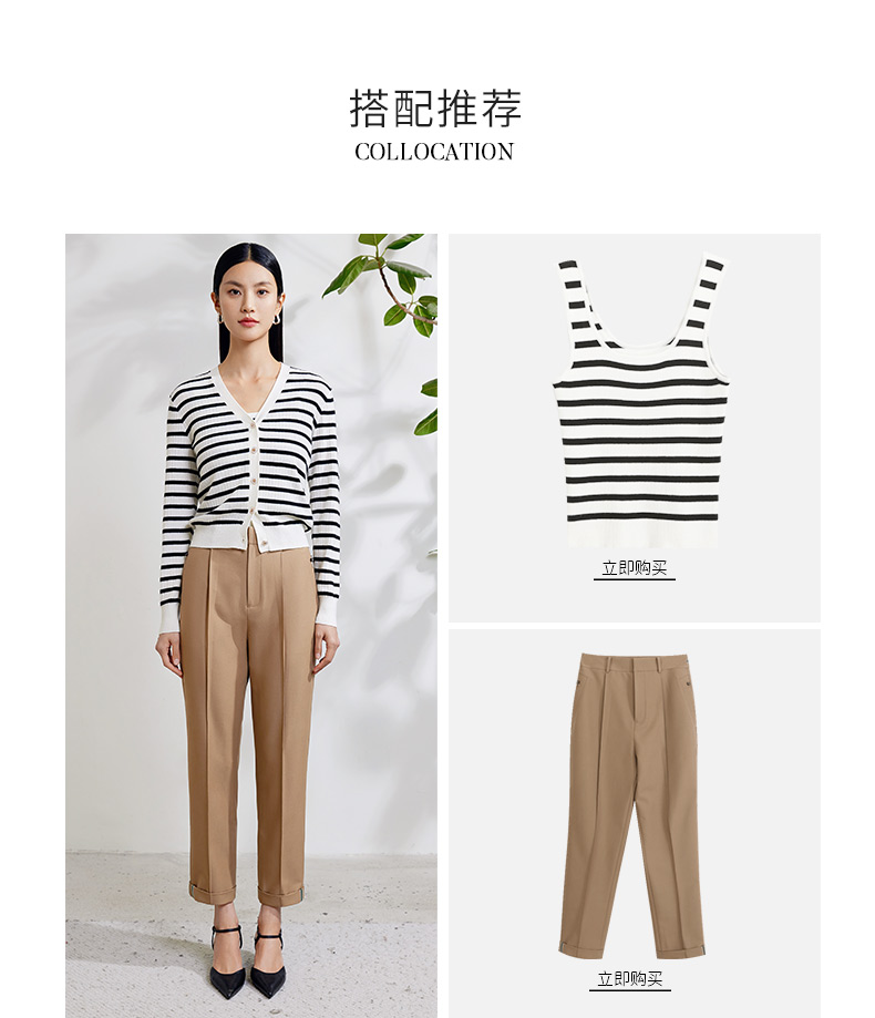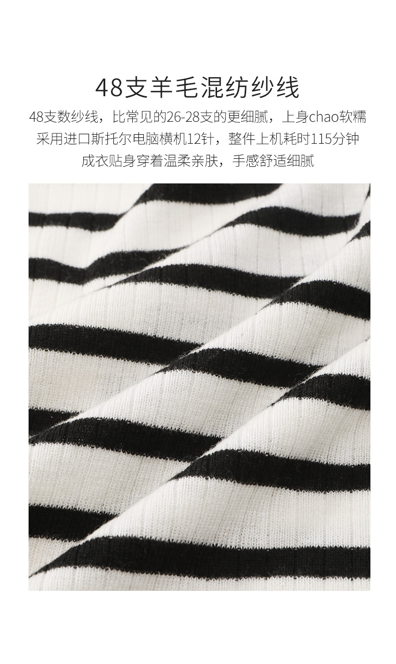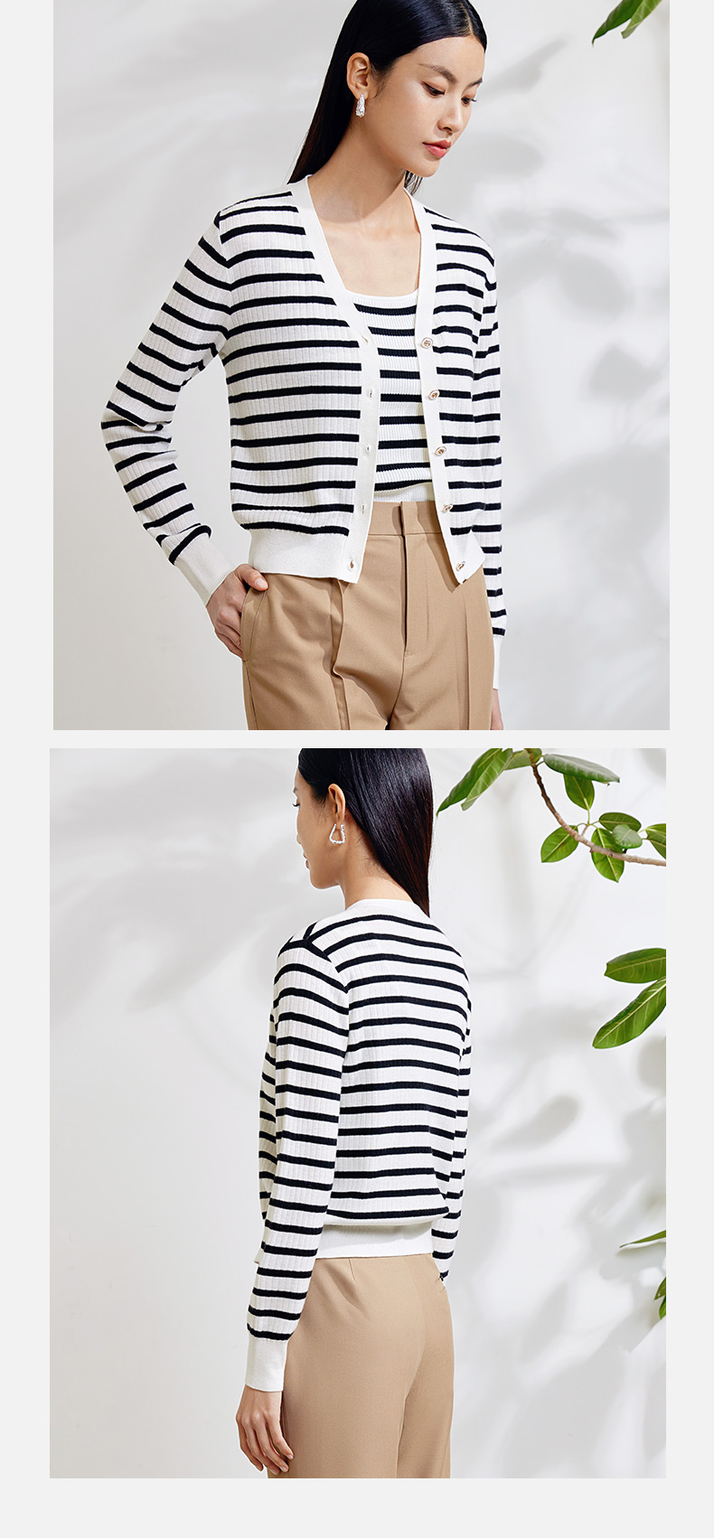 玳莎V领条纹针织开衫女时尚百搭显瘦羊毛上衣外套 EA33301