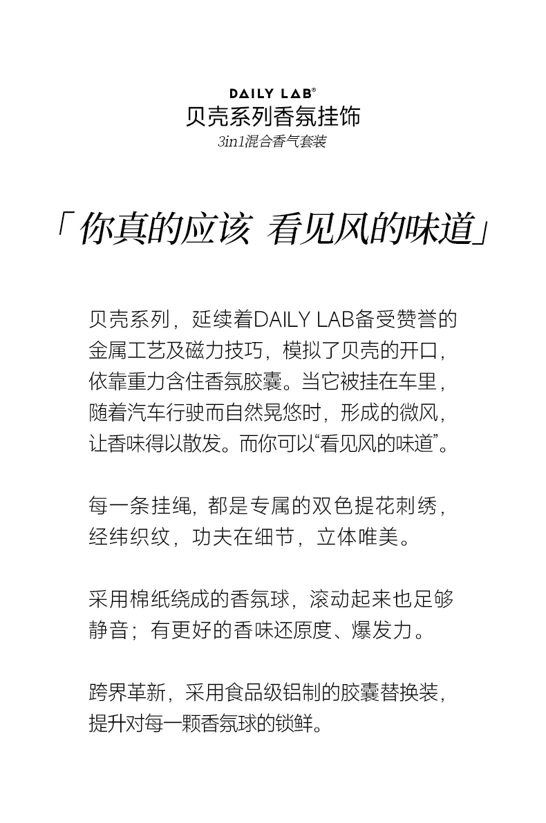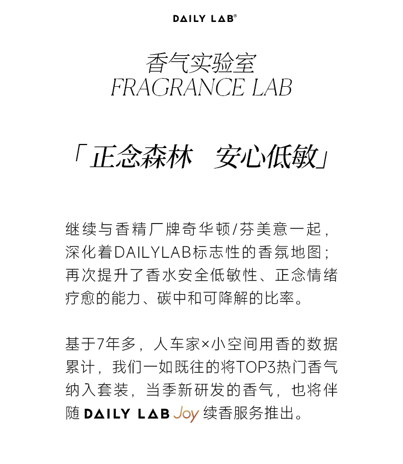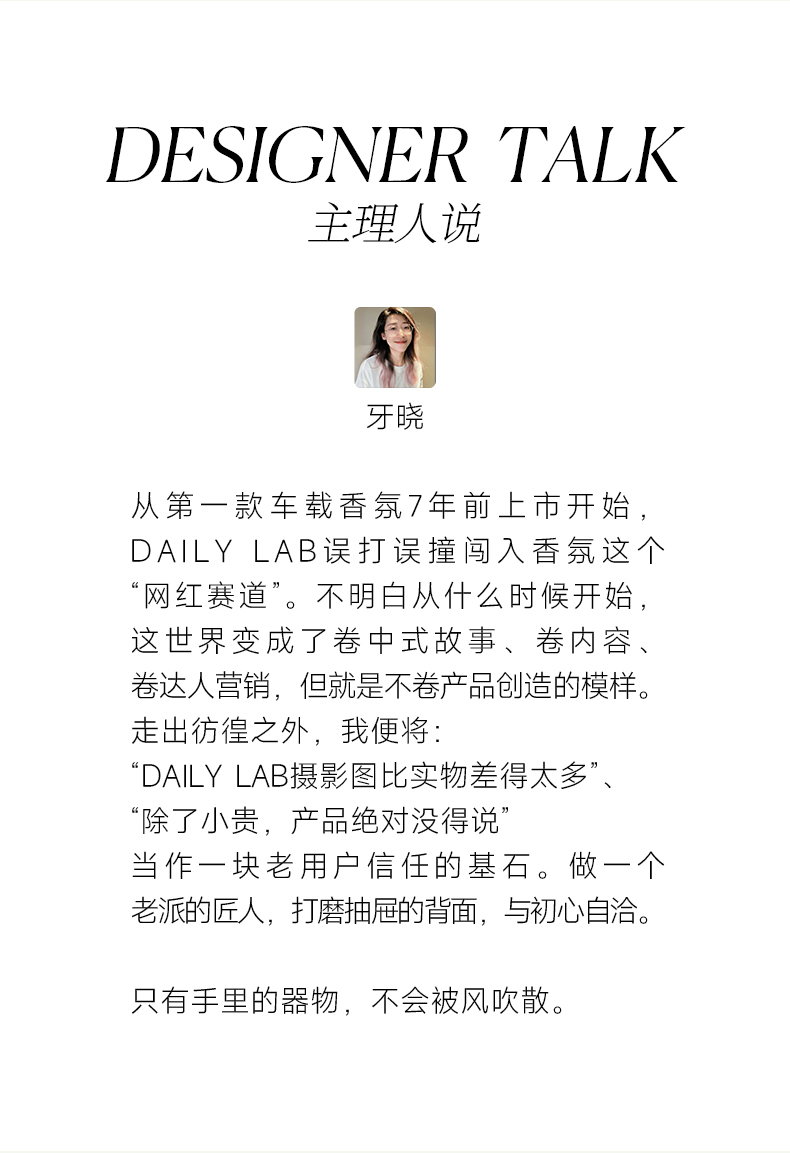 - DAILY LAB|日常实验室,立足东方美学,是专注于「香气可视化」的轻奢空气交互品牌。