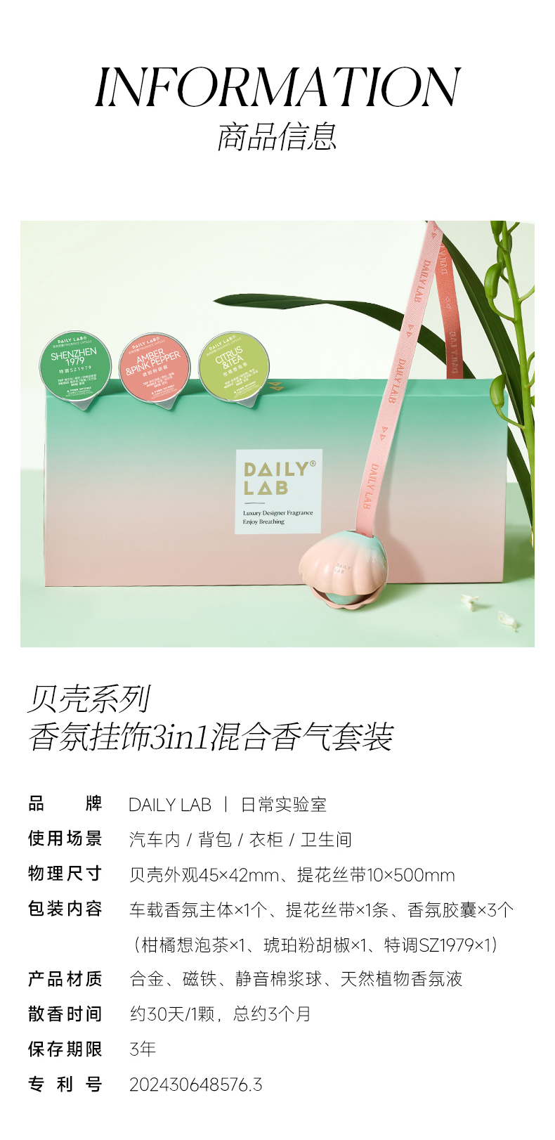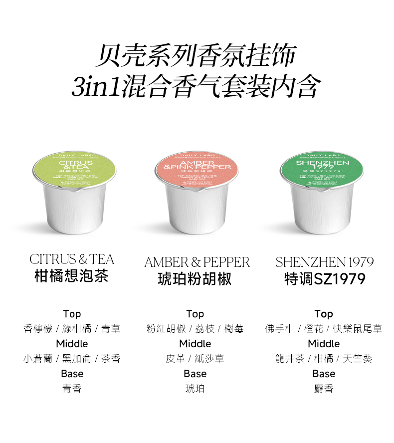 【小程序会员特价】DAILY LAB贝壳系列香氛挂饰 3in1混合香气套装