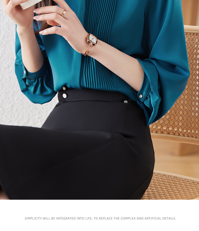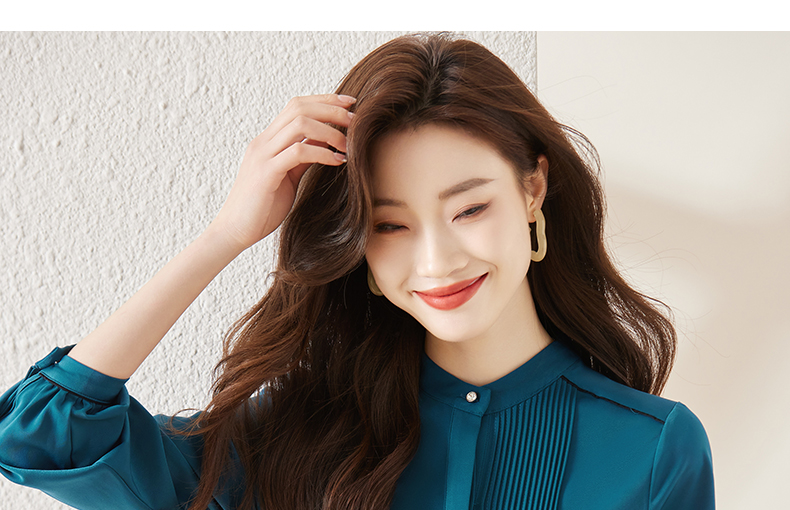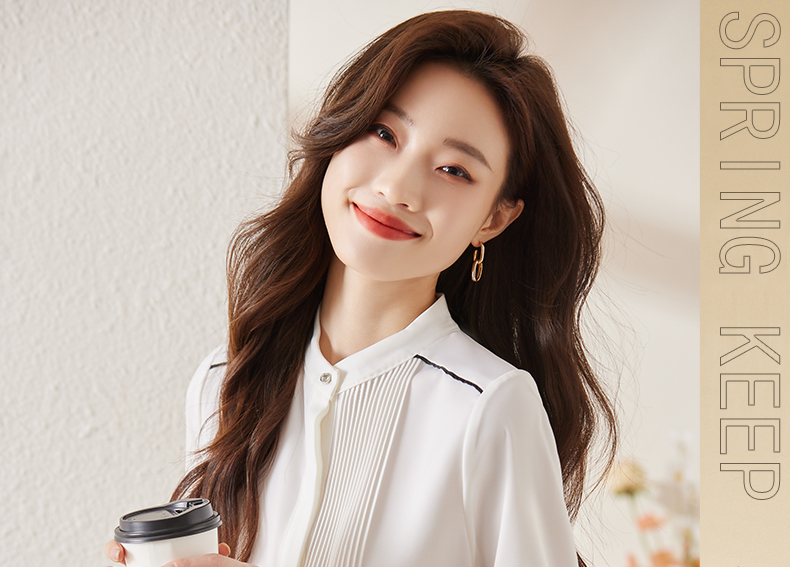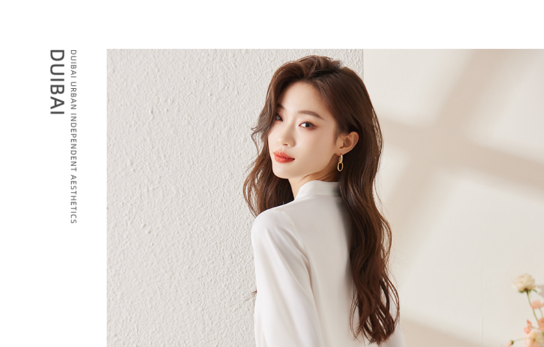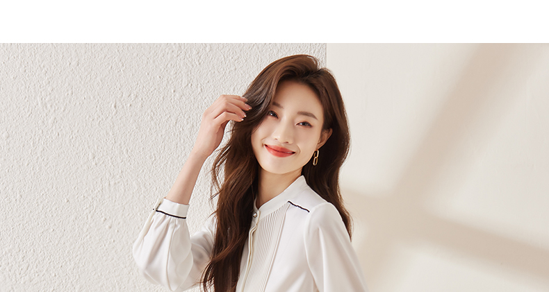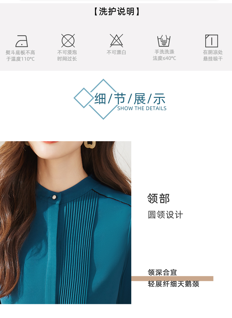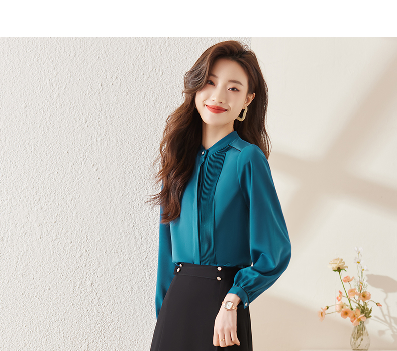春季新款时尚圆领立领衬衫女气质百搭显瘦上衣