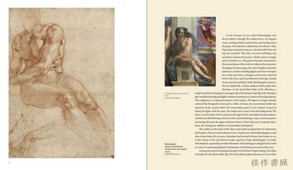 每一章节都突出了米开朗基罗人体理想的一个重要方面,并研究了他的同时代艺术家及后世艺术家如何受到其影响并进行了改编。书中探讨了诸如亚当与夏娃、十字架上的耶稣与圣母怜子像等题材,以及源自神话的母题如赫拉克勒斯的功绩;米开朗基罗的技法如何在17世纪至19世纪的艺术学校中被传授;女性作为主题的兴起;以及在现代主义时期理想化人体形象的衰落。这些并列的对比提供了丰富的见解,展示了艺术家们如何描绘人体——既作为美德与英雄主义的典范,又作为邪恶与脆弱的载体。这些文本和范例共同为学习人体形态和西方艺术史的学生提供了完美的资源。