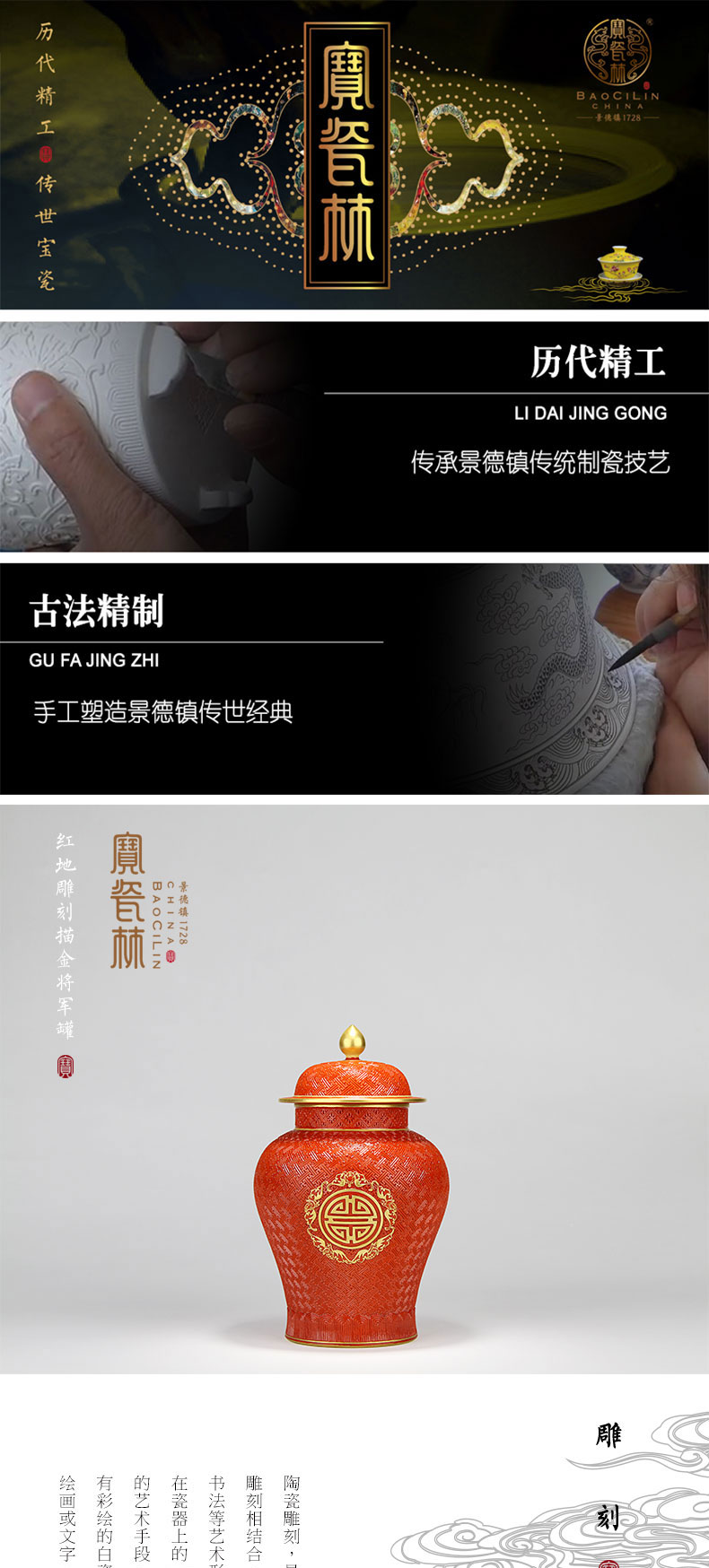 宝瓷林,2008年创立,是一家将传统清宫官窑制瓷技艺,移植于当代家居日用瓷品上的景德镇陶瓷骨干企业,是当下唯一一家代表“千年瓷都-景德镇”走向全球的陶瓷连锁品牌,被誉为陶瓷界的“国酒茅台”。