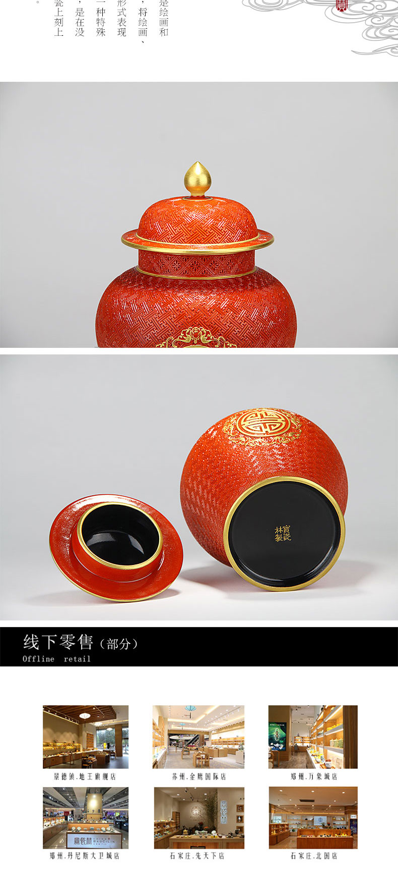 红地雕刻描金将军罐