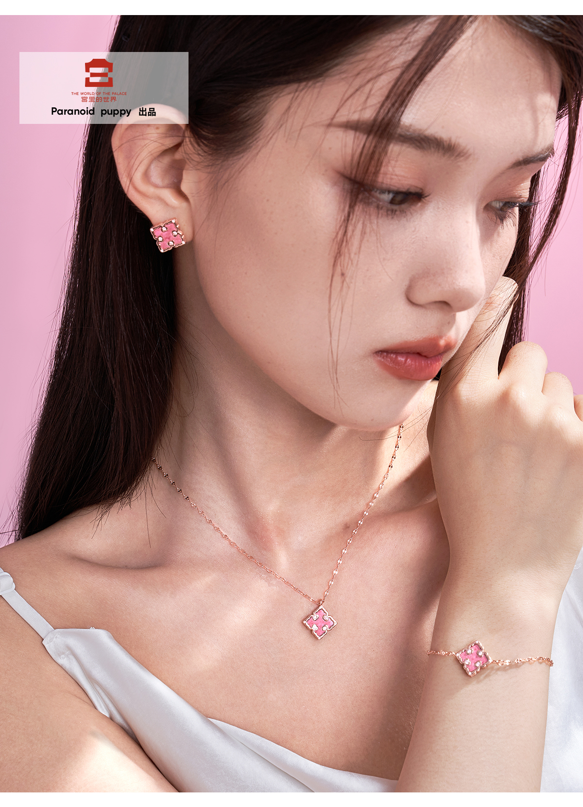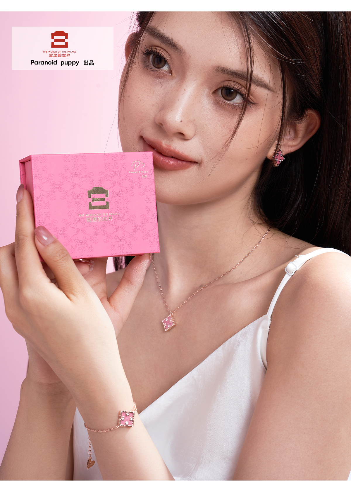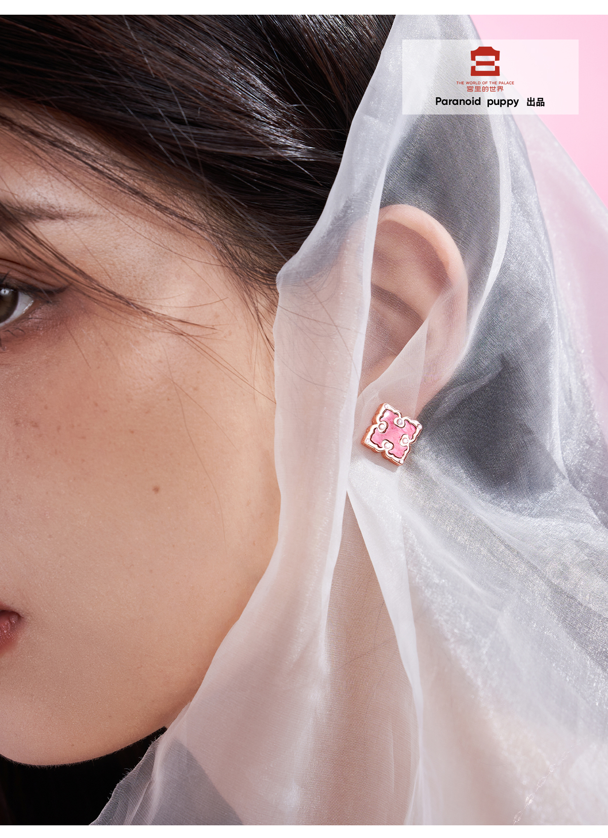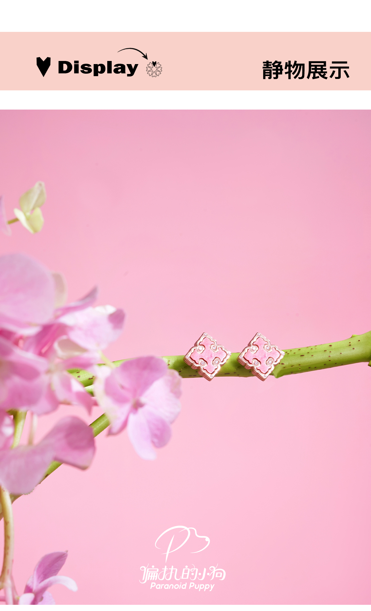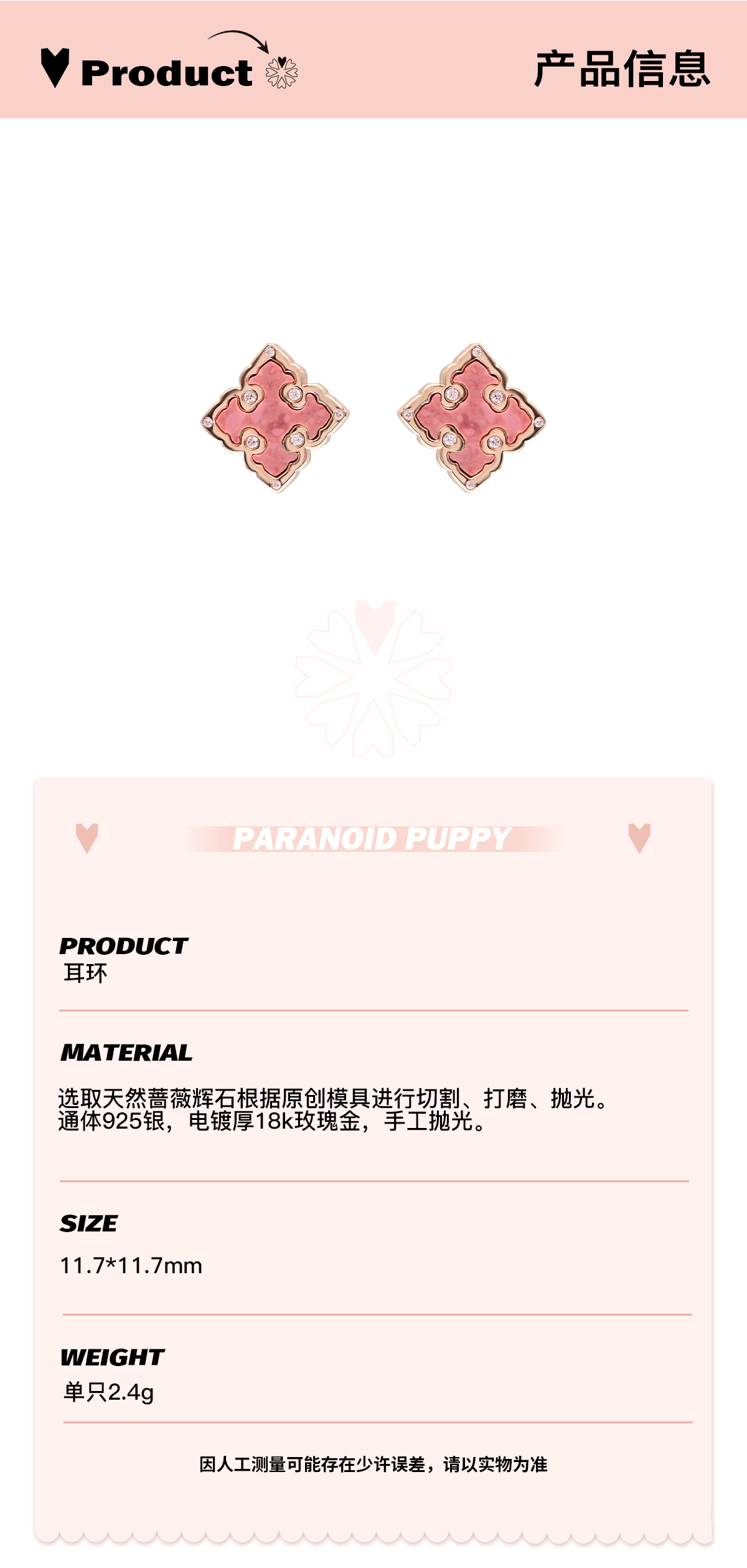 宫里的世界&Paranoid Puppy 《芙蓉意》天然蔷薇辉石纯银耳钉