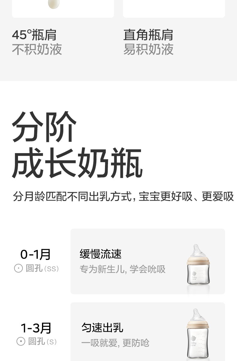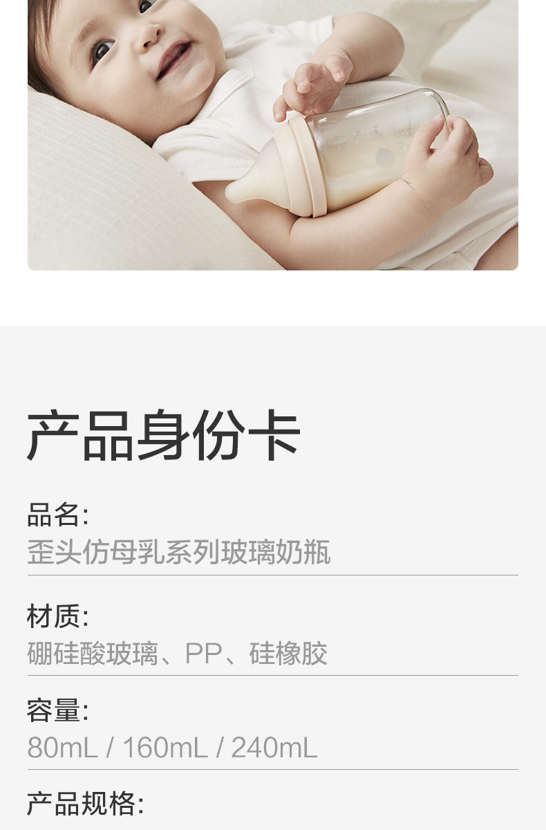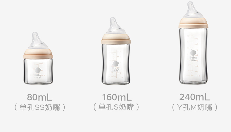 babycare80ml/120ml/240ml歪头仿母乳系列玻璃奶瓶
