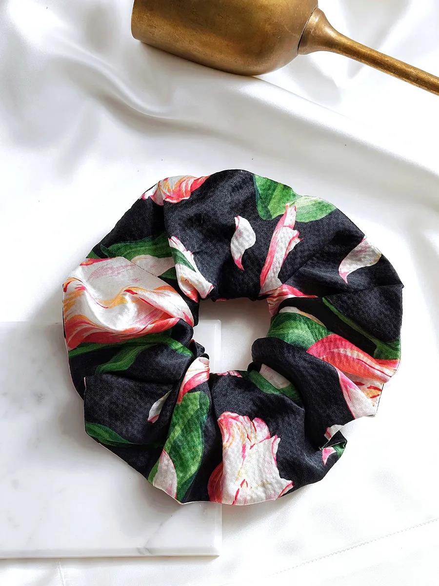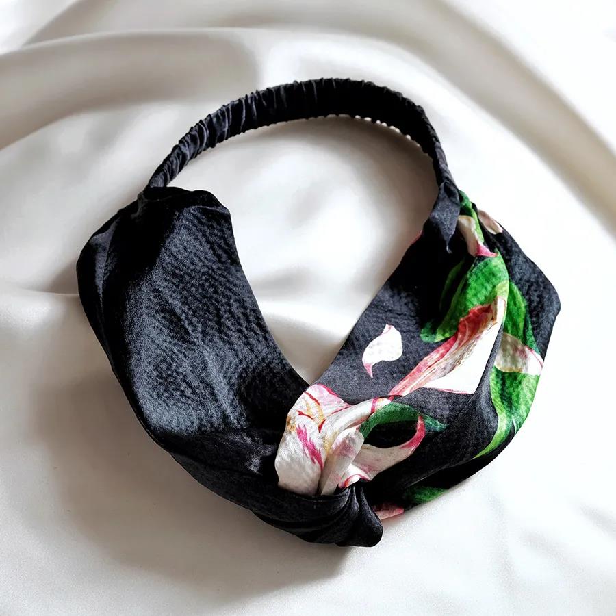 郁金香印花真丝配饰套装(含1个发带、1个发圈)