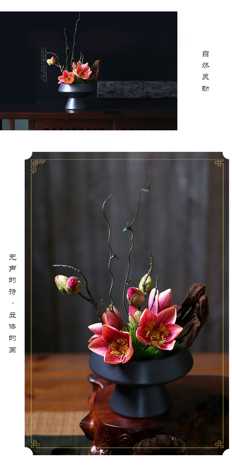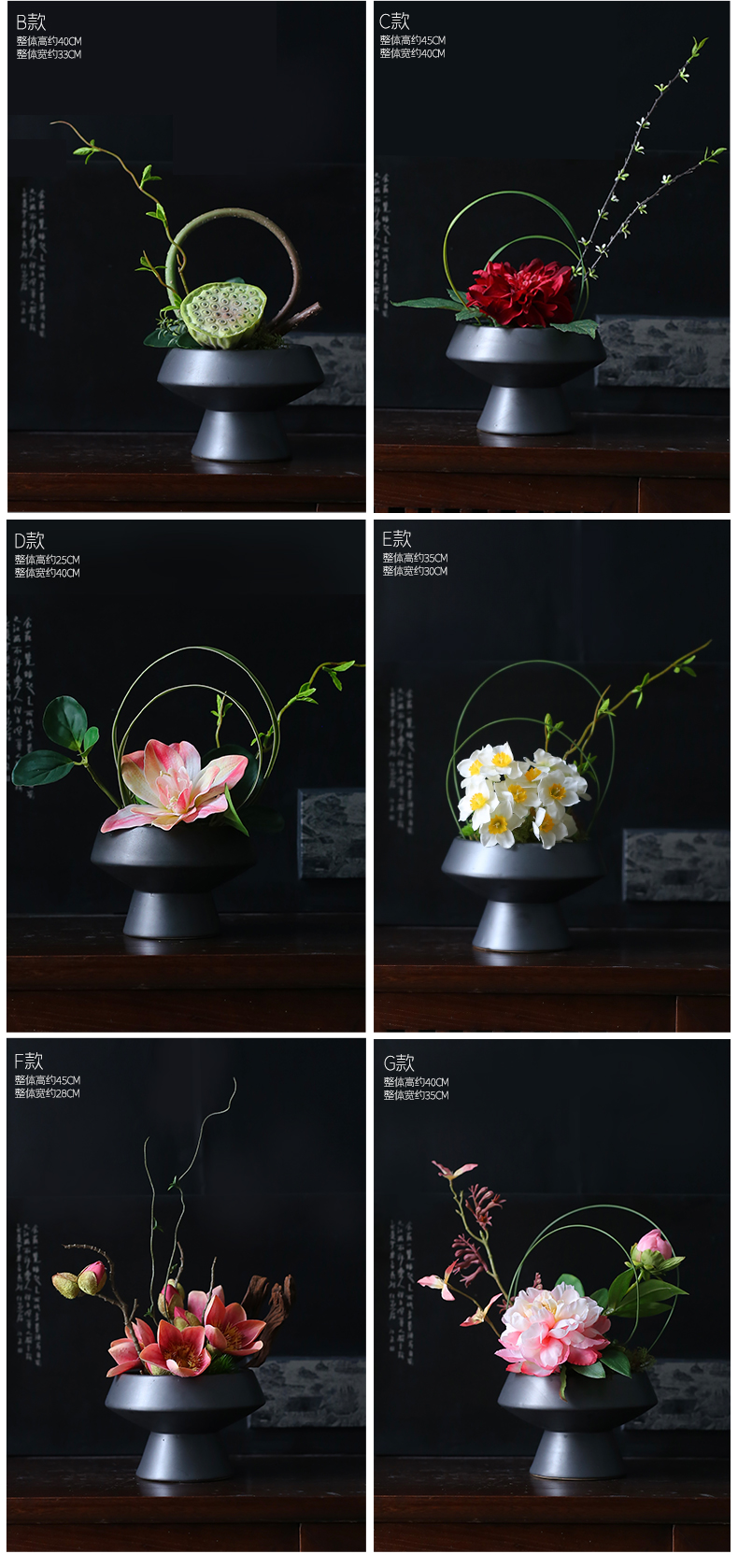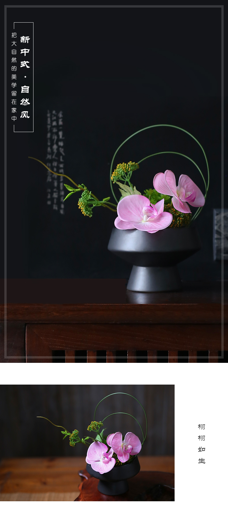 新中式高档仿真花艺摆件酒店餐厅客厅茶室茶几餐桌面盆景软装饰品