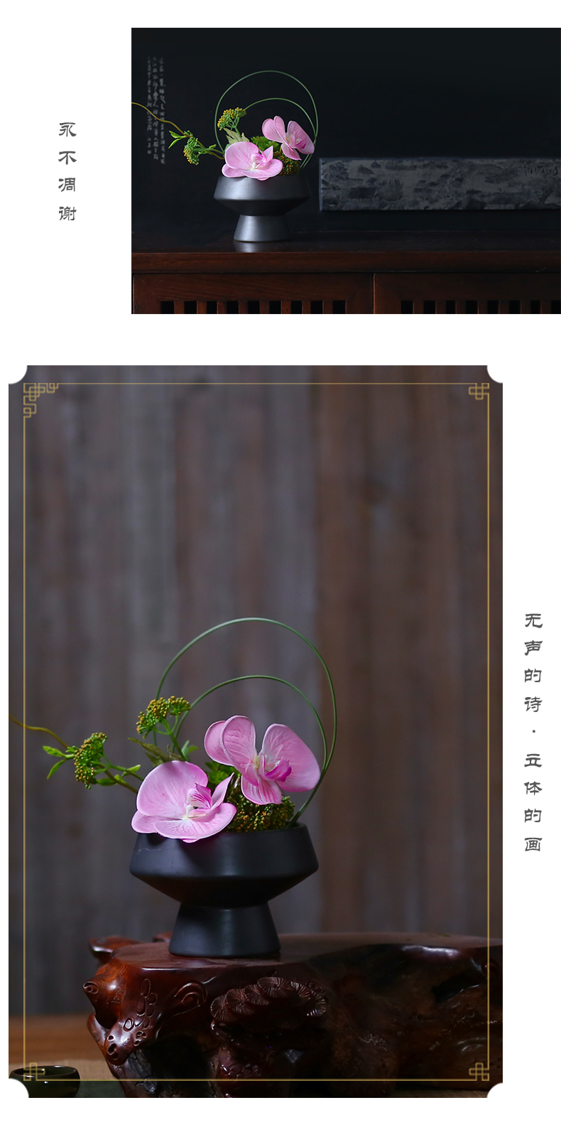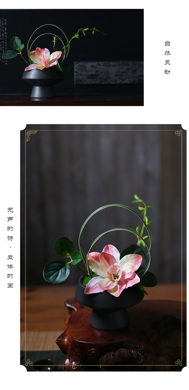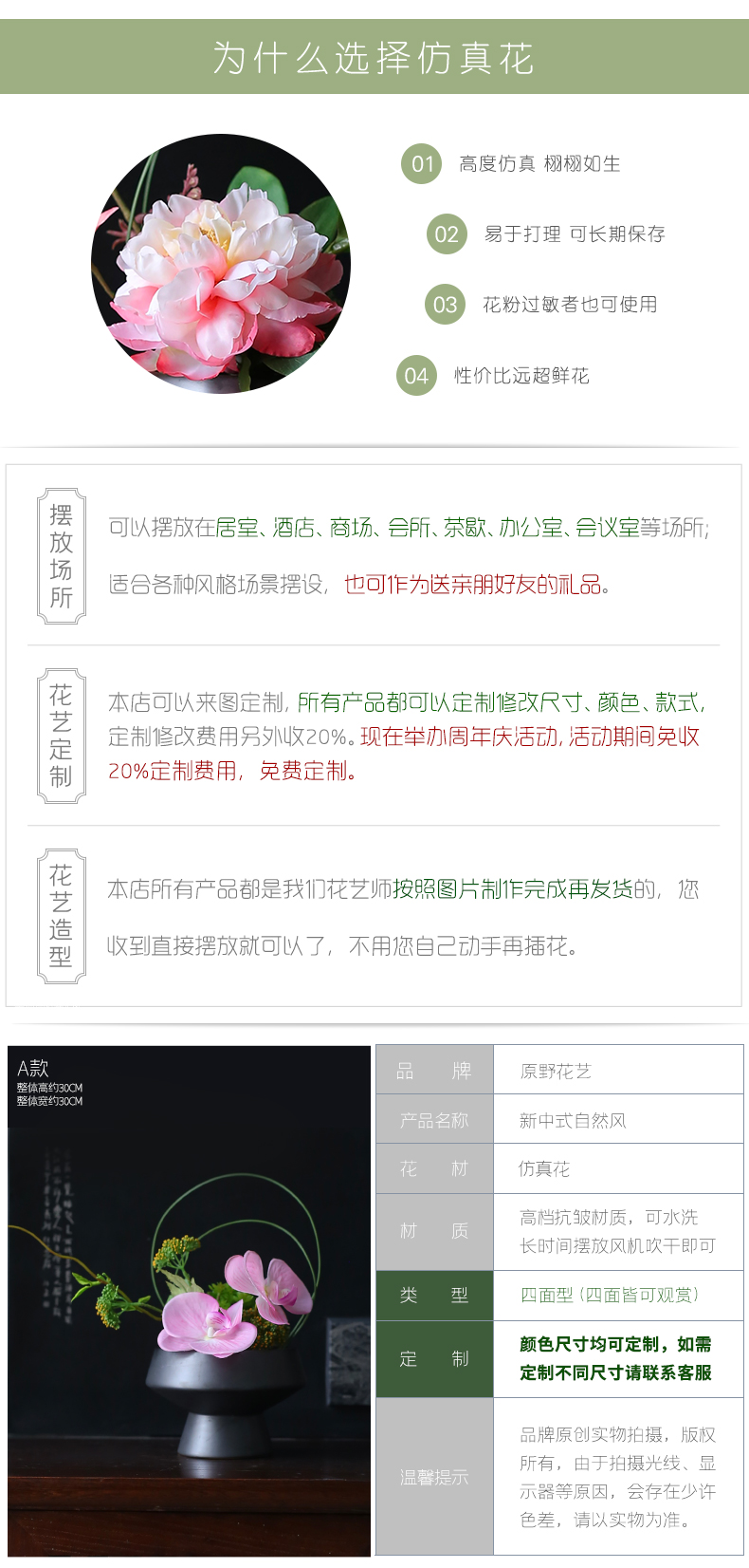 新中式高档仿真花艺摆件酒店餐厅客厅茶室茶几餐桌面盆景软装饰品