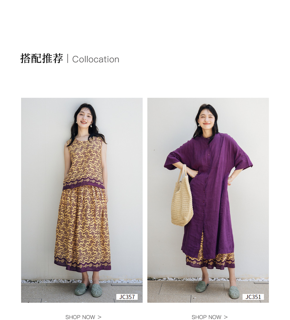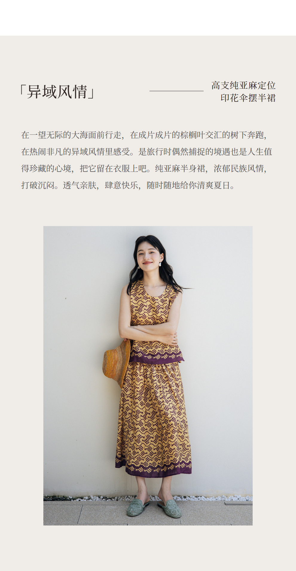 以天然亚麻为载体,融合热烈色彩与自在剪裁为身在城市、心怀远方的女性提供兼具美学与舒适的旅行着装