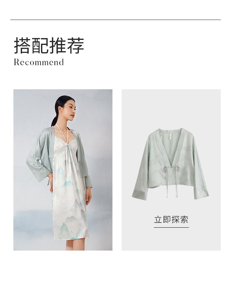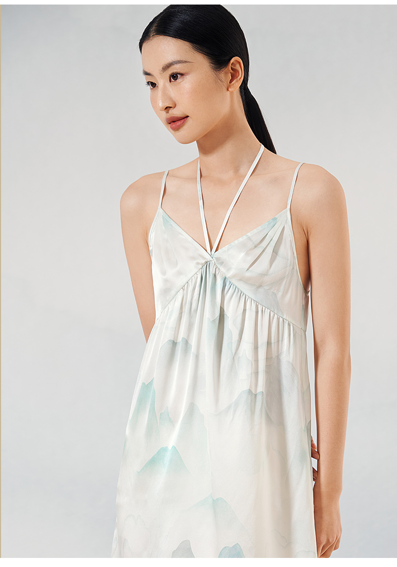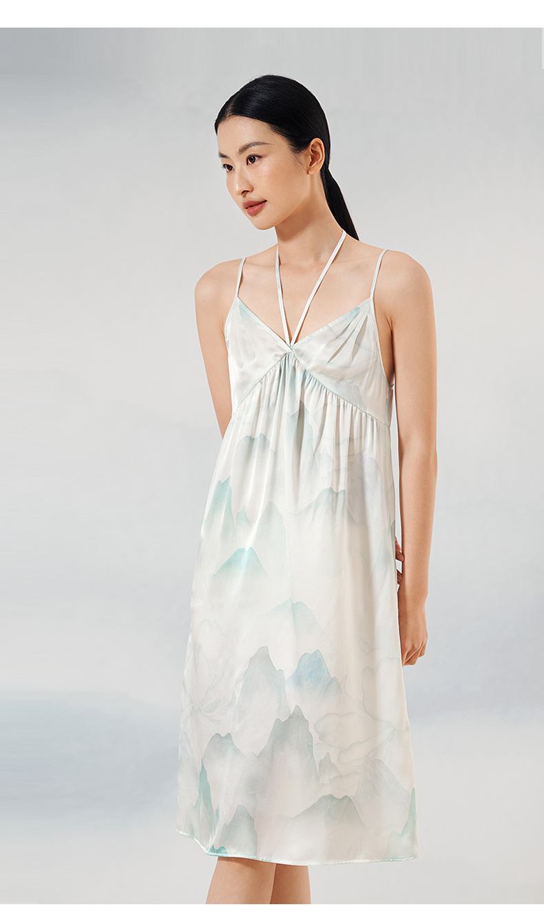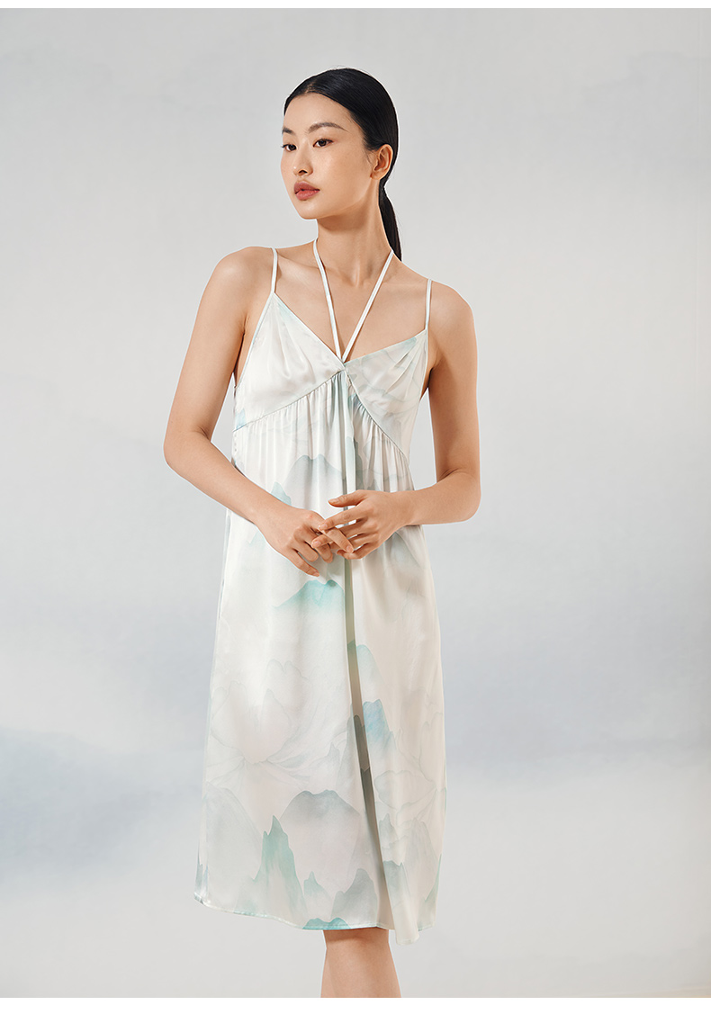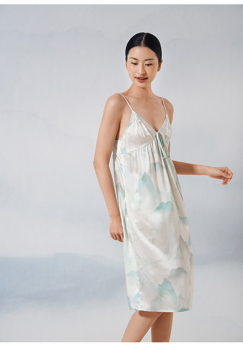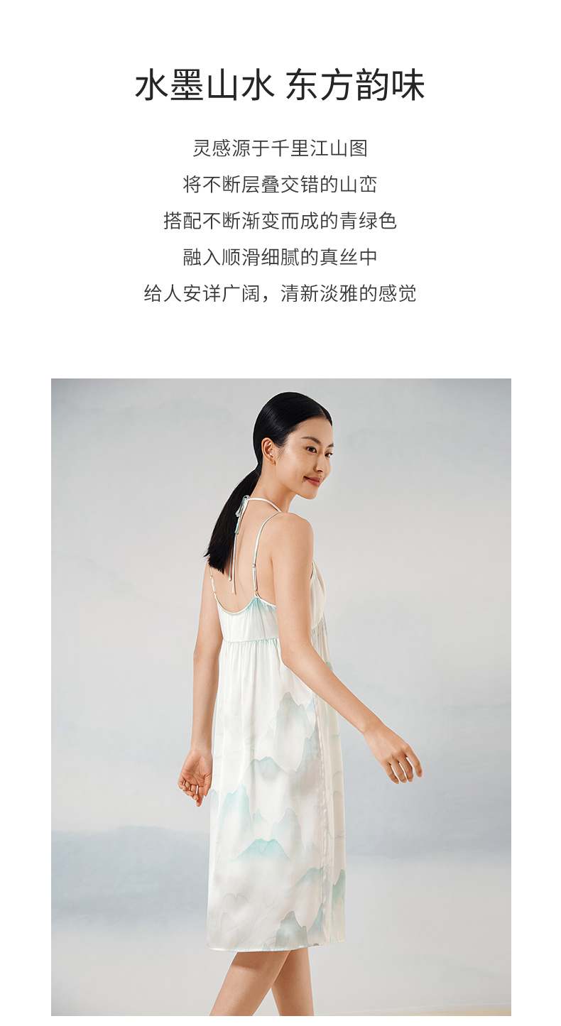 【水墨韵味】金三塔重磅真丝睡裙女中式100%桑蚕丝印花吊带裙家居服 YSFEB302