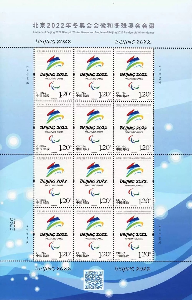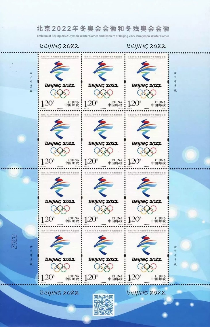 邮票简介:该套邮票整体面貌简洁大气,纯白底色和会徽的红黄蓝色调形成强烈对比,给人以耳目一新的体验。在印制工艺上,两枚邮票上共印制了22个“BEIJING2022”,侧光观察,隐约可见,为邮票增添了绚丽的视觉感受。