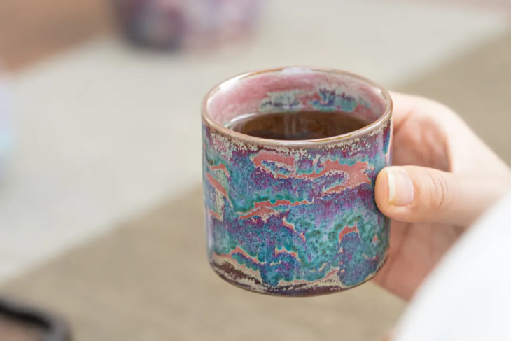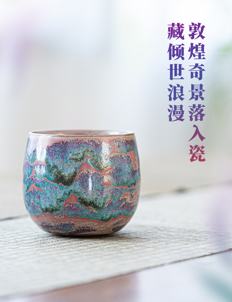 本次“敦煌釉”系列茶器所采用的原矿釉料,均为翟群老师独家调配,经历了无数次试验,才得以烧出这奇美壮阔、绚烂多彩的“敦煌奇景”。