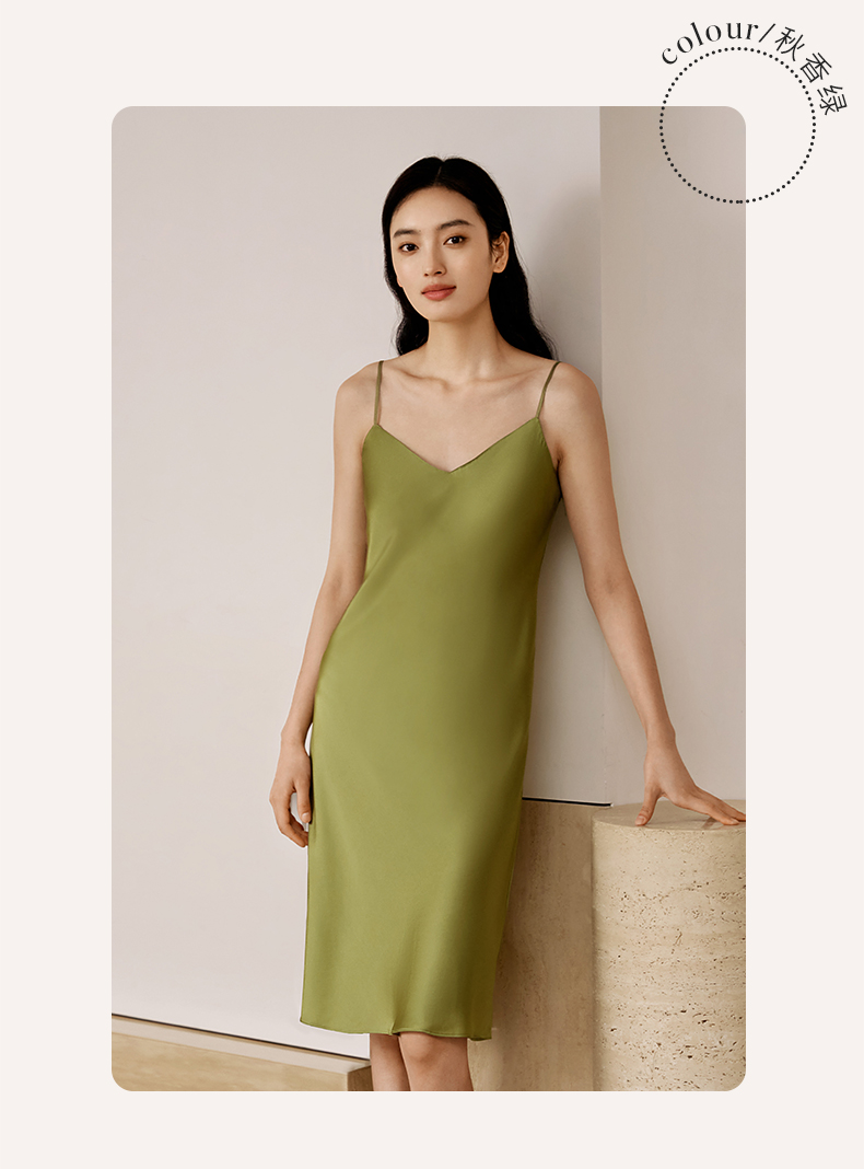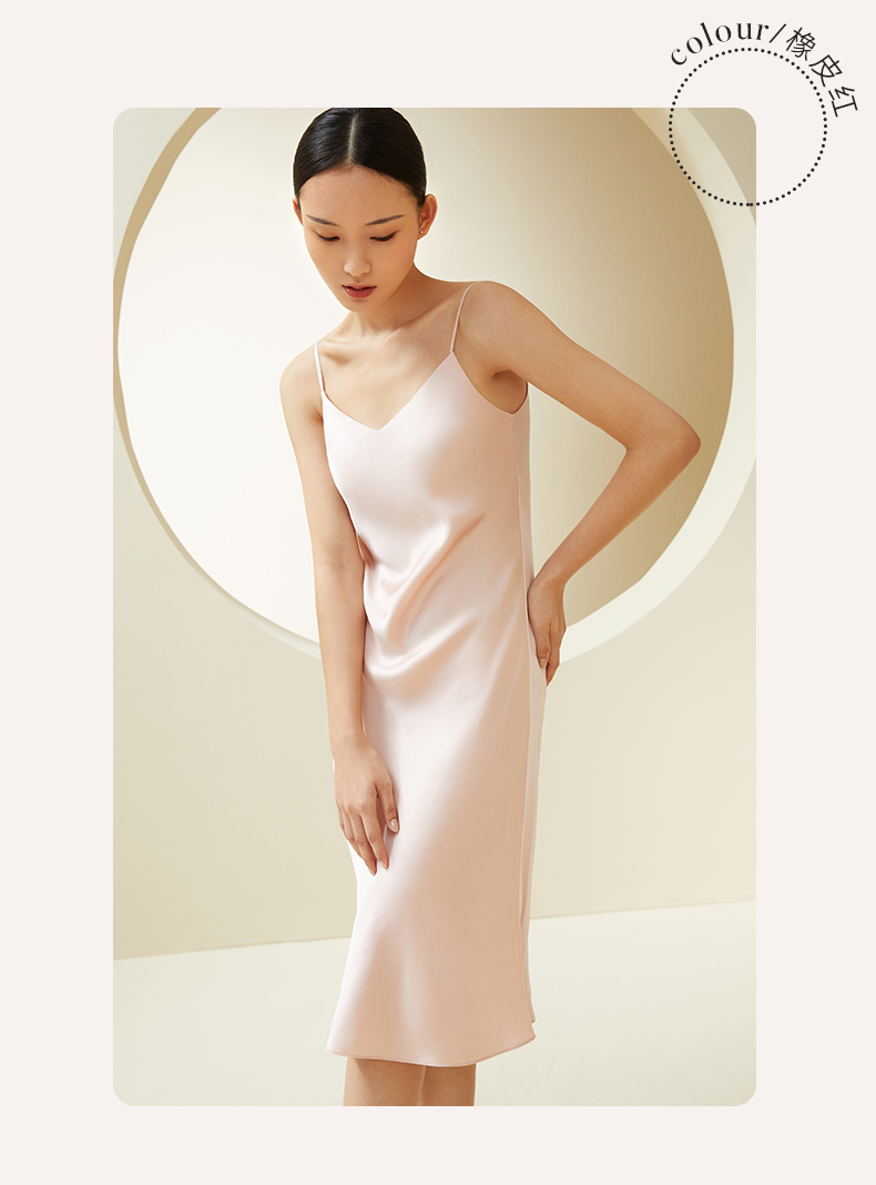金三塔重磅19姆米真丝 玲珑曲线 斜裁长款真丝吊带裙可搭配可外穿 YSFCC301