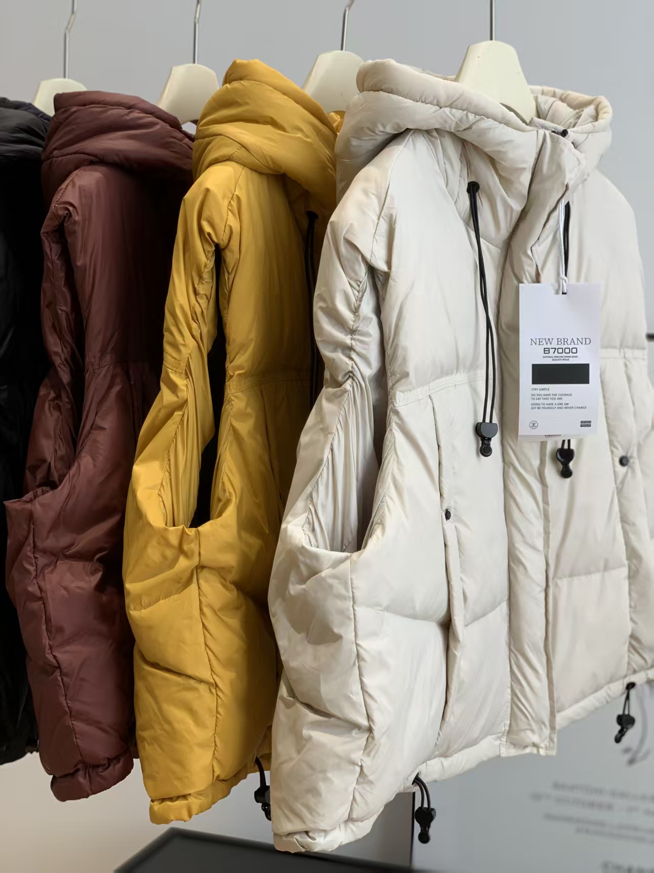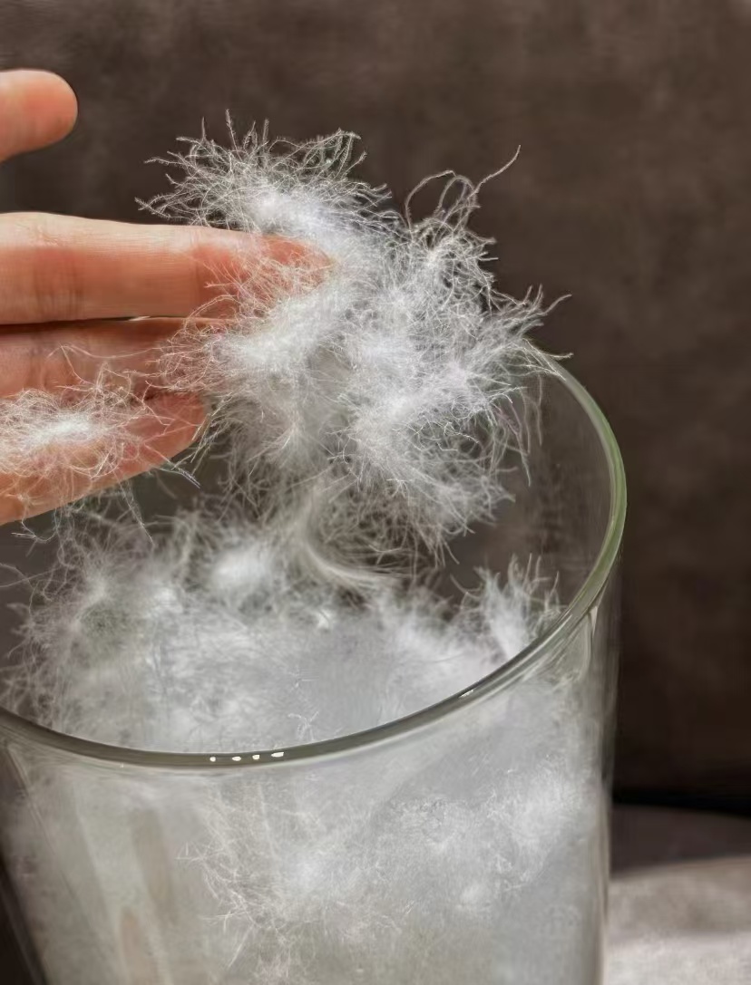 高品质90%鹅绒填充,绒朵大羽梗小,蓬松保暖,洁净无异味。