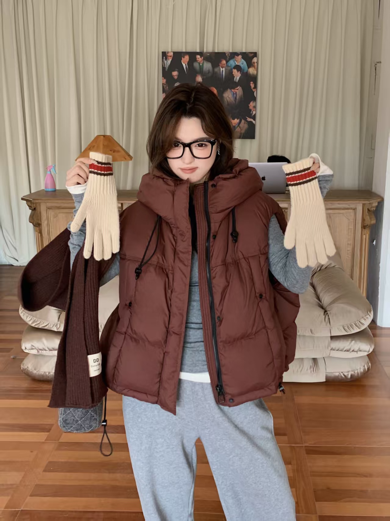 宽松立裁+立领连帽设计,包容量大,遮肉显瘦时髦保暖两不误。