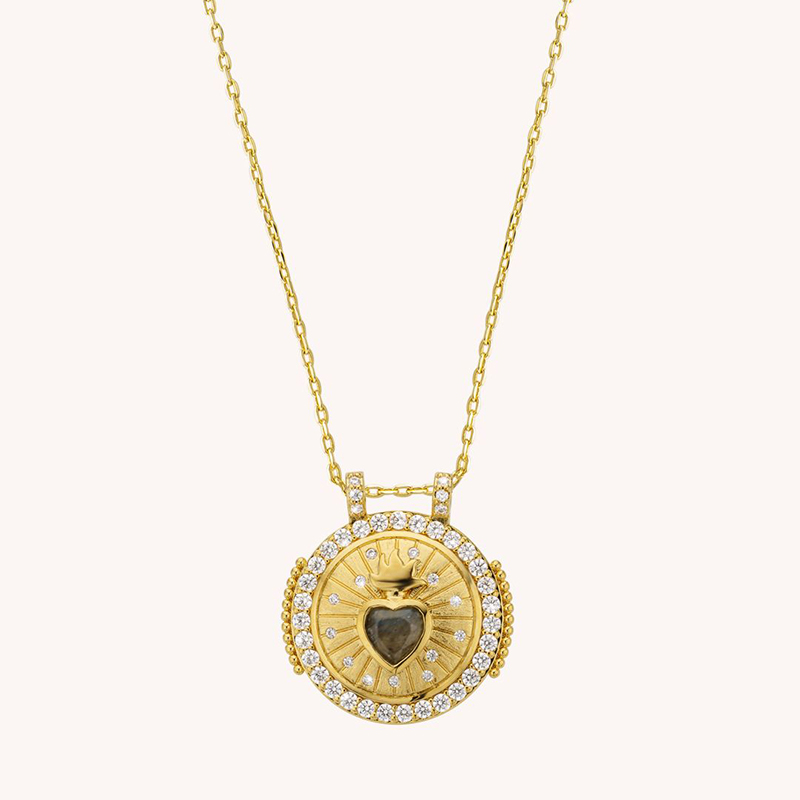 订购8周到|MYA-BAY-LABRADORITE-心形 拉长石 硬币 吊坠 项链[比利时设计师]