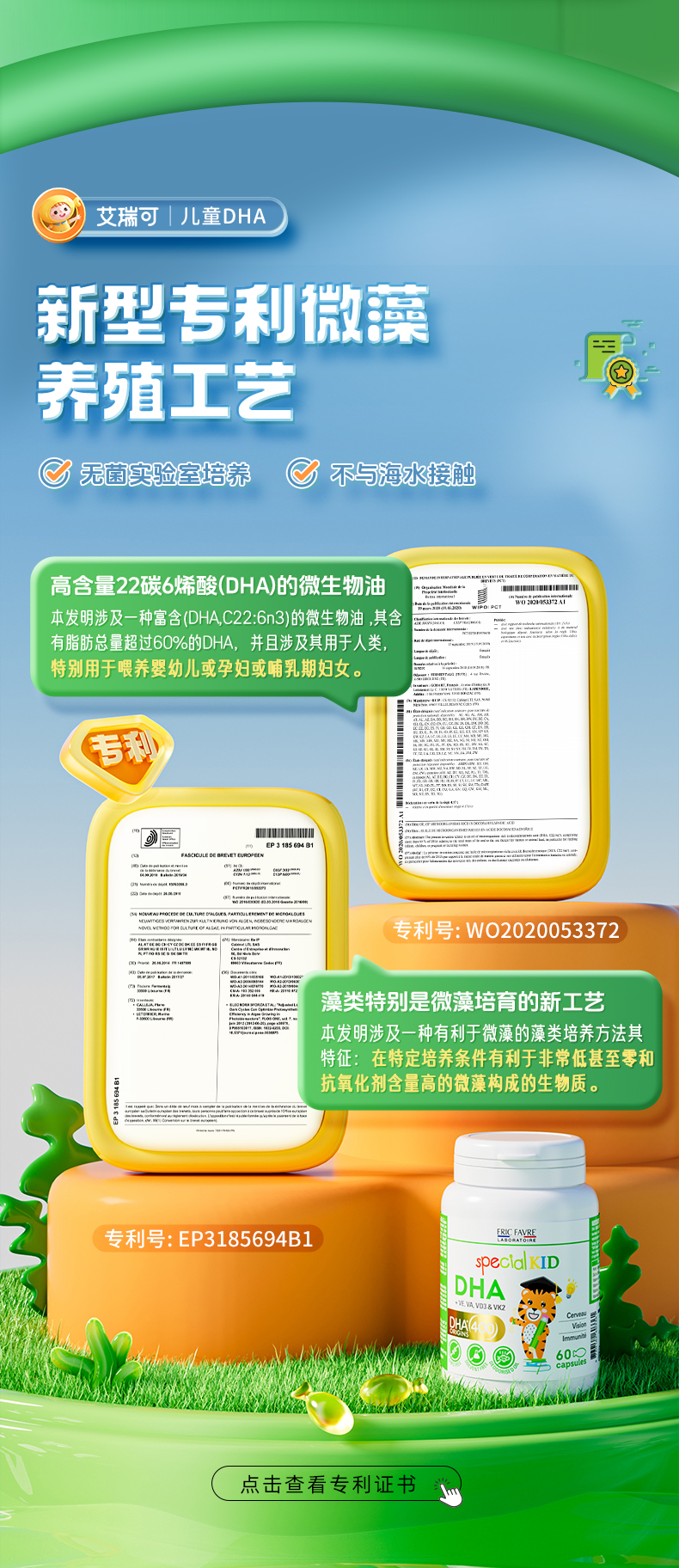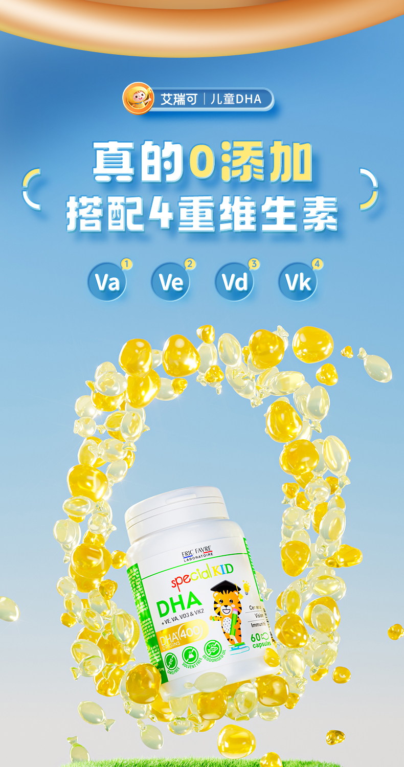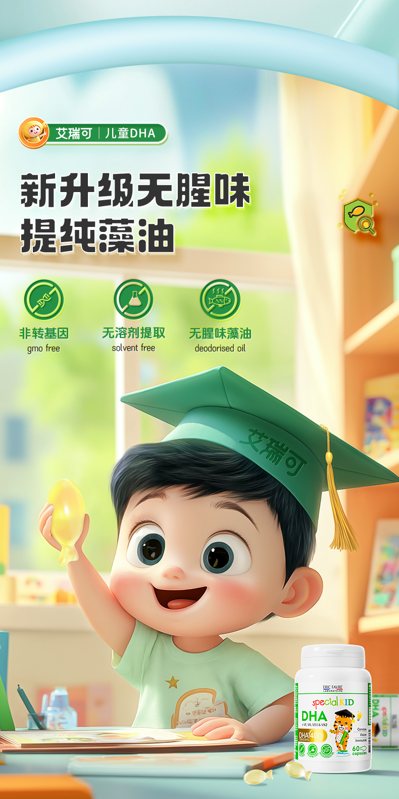 【跨境商品 保税发货】法国ERIC FAVRE艾瑞可 儿童DHA藻油胶囊 60粒/瓶(1-2粒/日 分龄食用)
