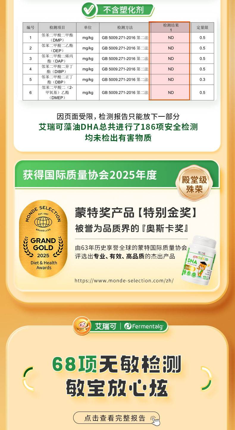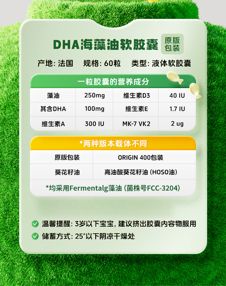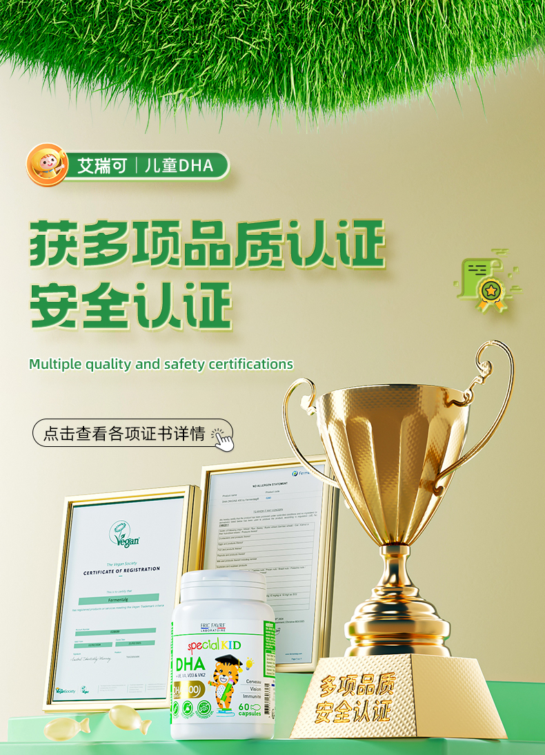 【跨境商品 保税发货】法国ERIC FAVRE艾瑞可 儿童DHA藻油胶囊 60粒/瓶(1-2粒/日 分龄食用)