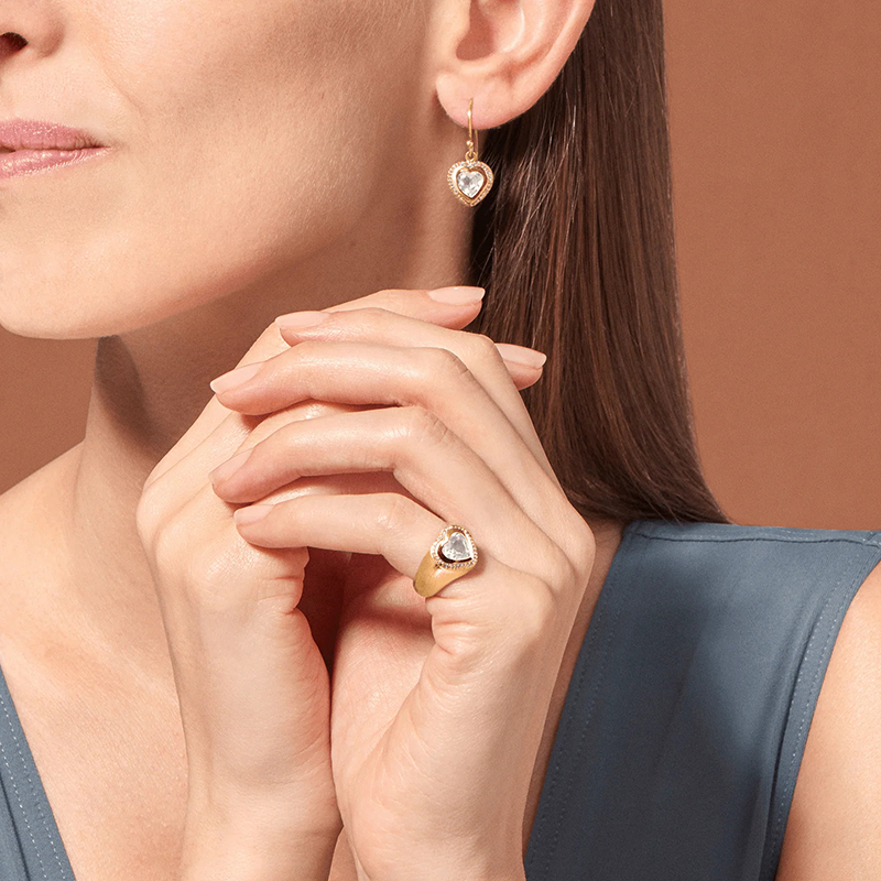 北京仓|Tityaravy-Gini-金色 心形 白托帕石 吊坠 耳环(单只)[法国设计师]