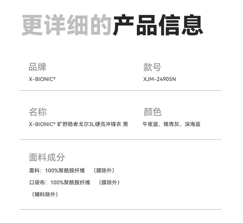 X-BIONIC 旷野隐者戈尔3L硬壳冲锋衣 男 户外徒步登山防水硬壳 XJM-24905N