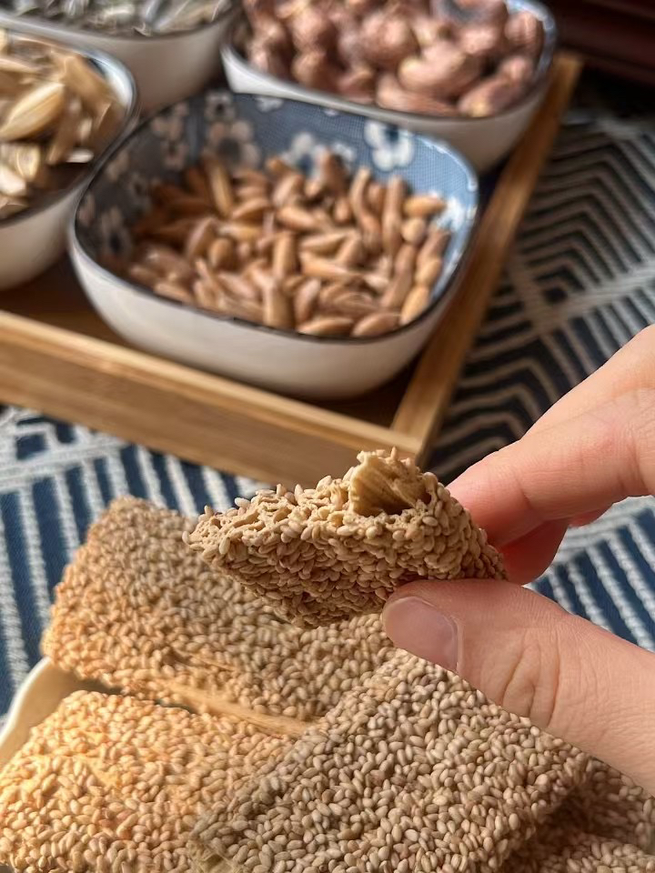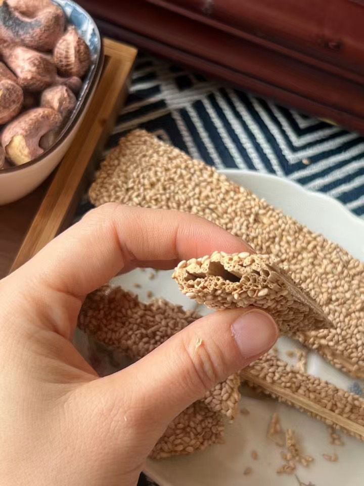 【古法芝麻糖】无论是小朋友还是女性朋友都是很好的一种零食。因为麦芽糖是由玉米,小麦等等一些粮食(采用古法手工工艺)经过发酵之后制成的糖类物质。
