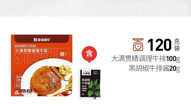 大希地爱锅青年大满贯精调理牛排120g(含黑椒酱20g)(T)