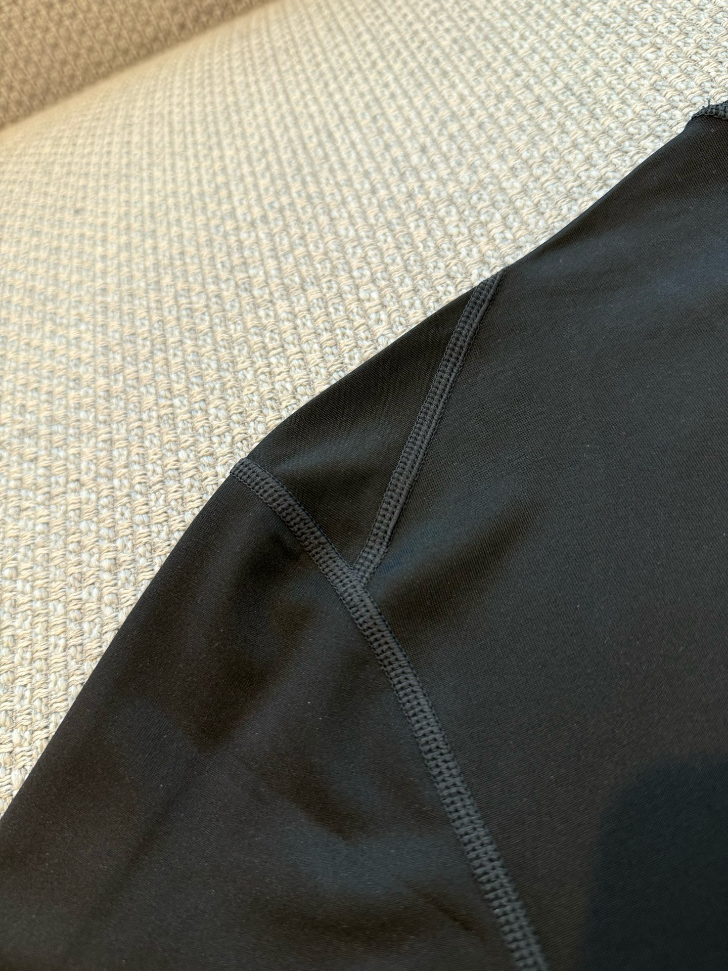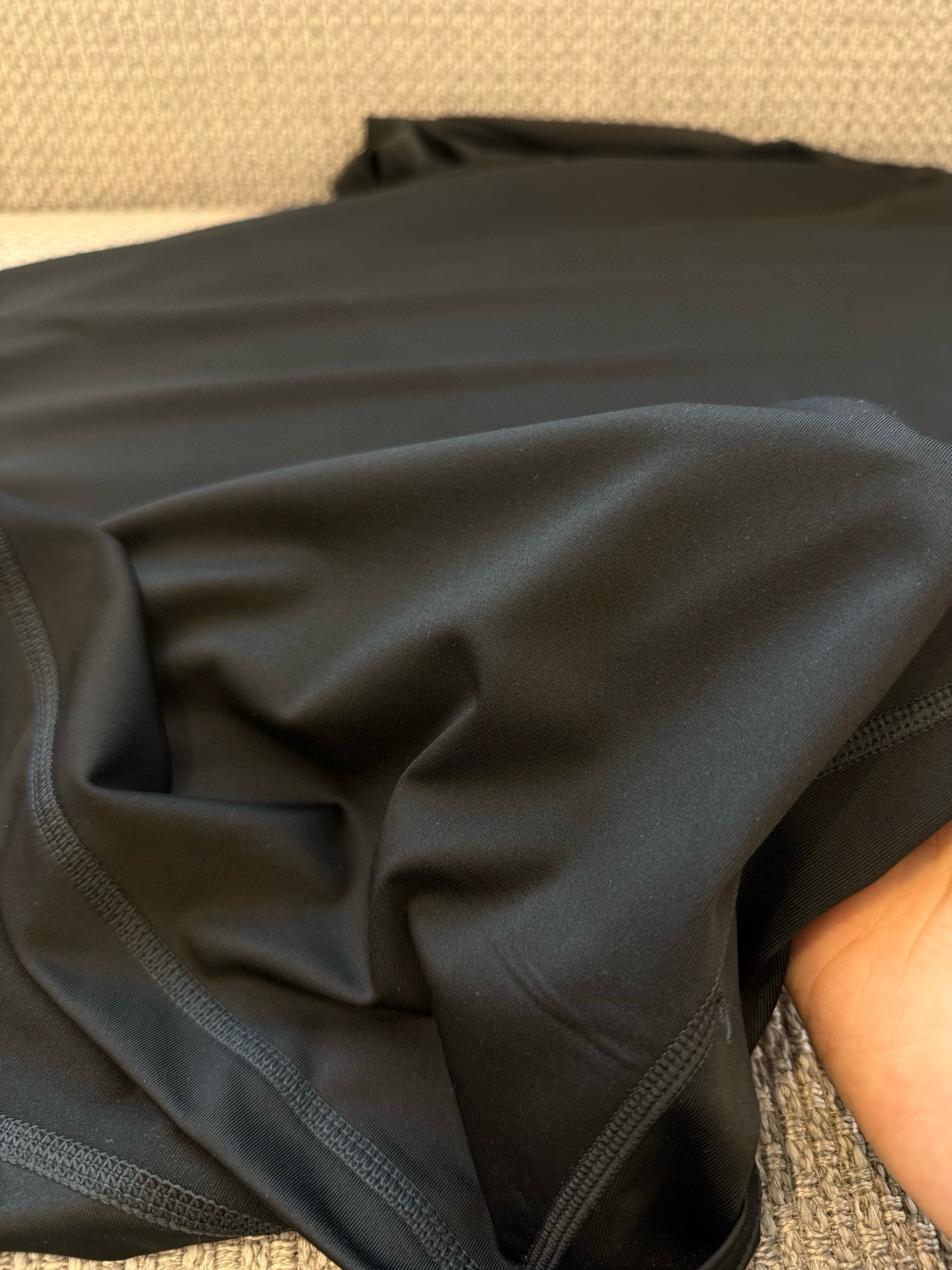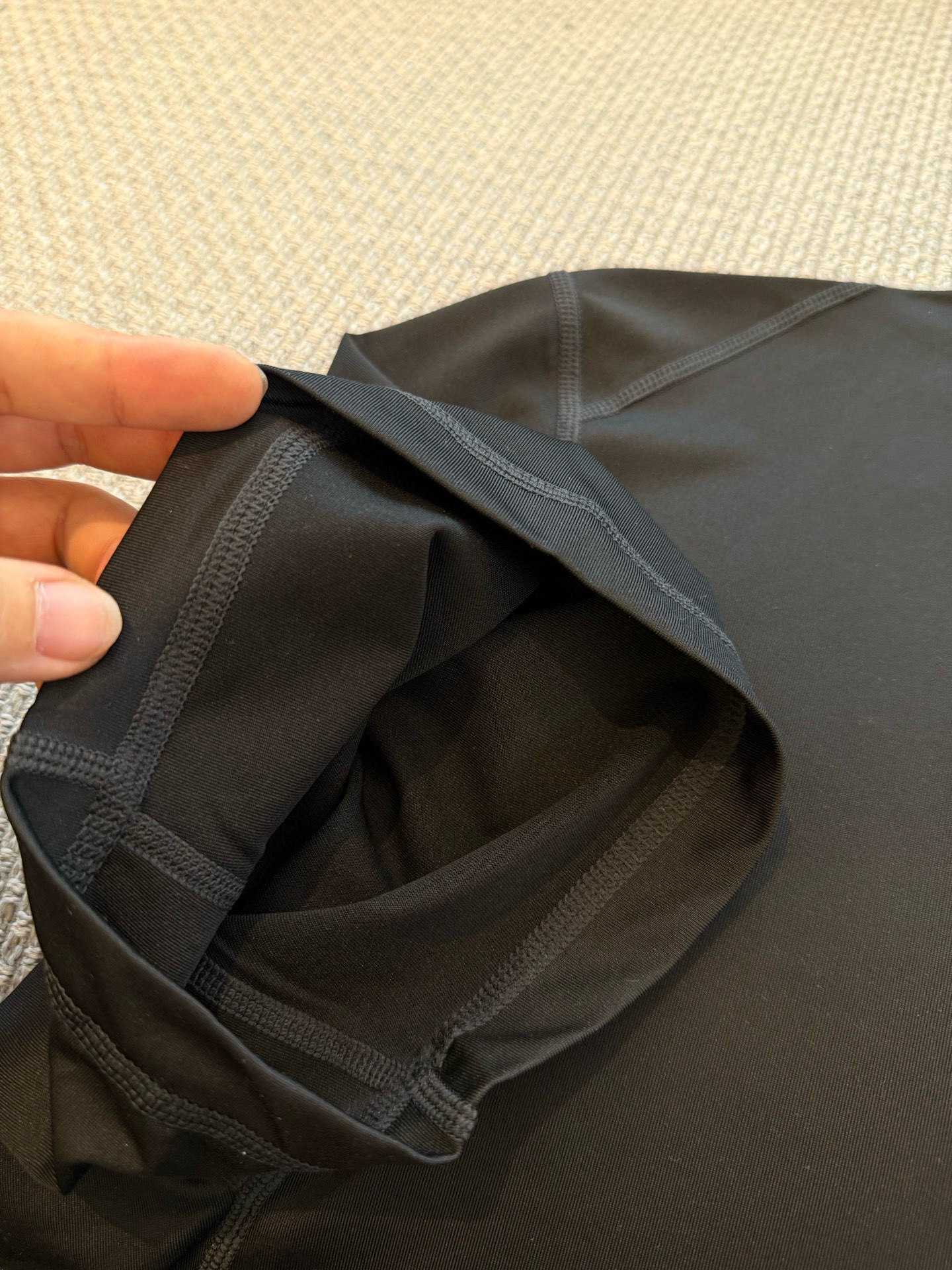 超级舒服的科技速干面料,透气舒爽,吸湿性巨好!即便是高温运动之后的暴汗状态,也能快速散热干爽,除此之外内搭、单穿都OK,贴身穿不要太舒服~水洗标、吊牌都有!后领无痕领标不影响穿着感受~细节做工对版!