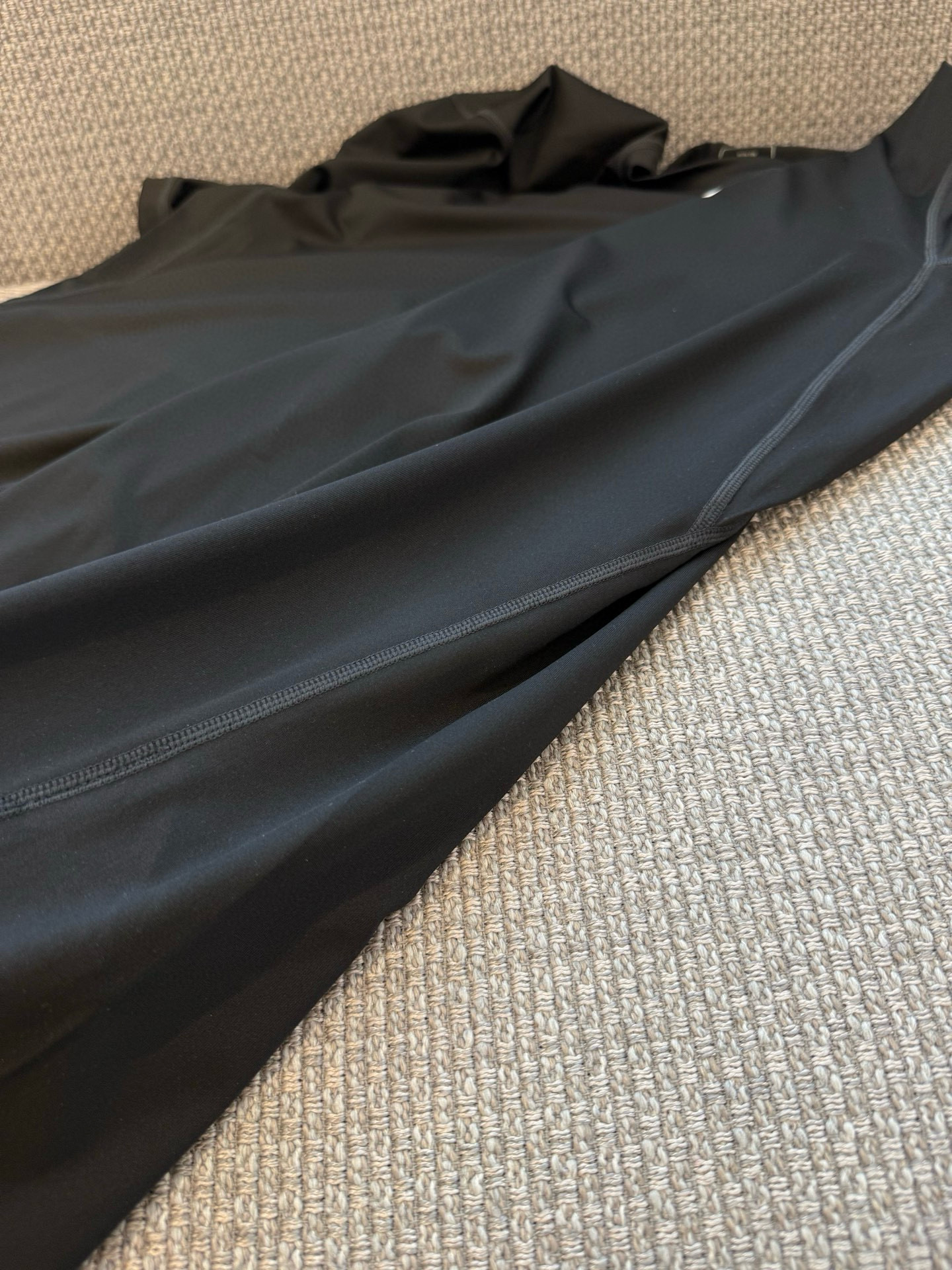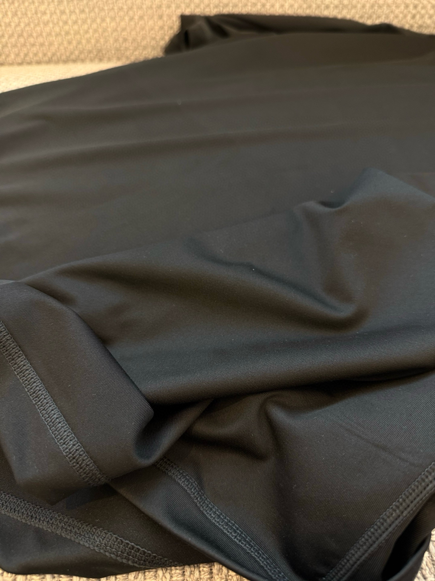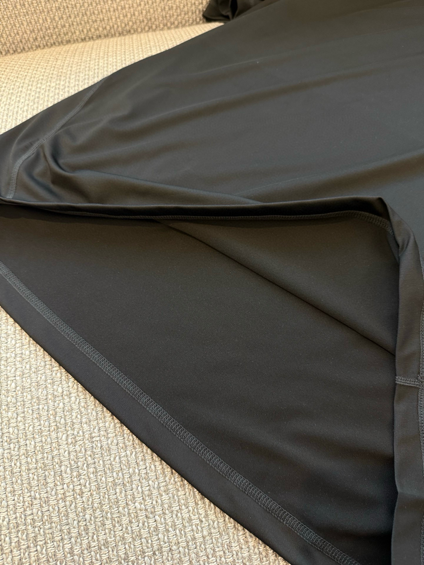 超级舒服的科技速干面料,透气舒爽,吸湿性巨好!即便是高温运动之后的暴汗状态,也能快速散热干爽,除此之外内搭、单穿都OK,贴身穿不要太舒服~水洗标、吊牌都有!后领无痕领标不影响穿着感受~细节做工对版!