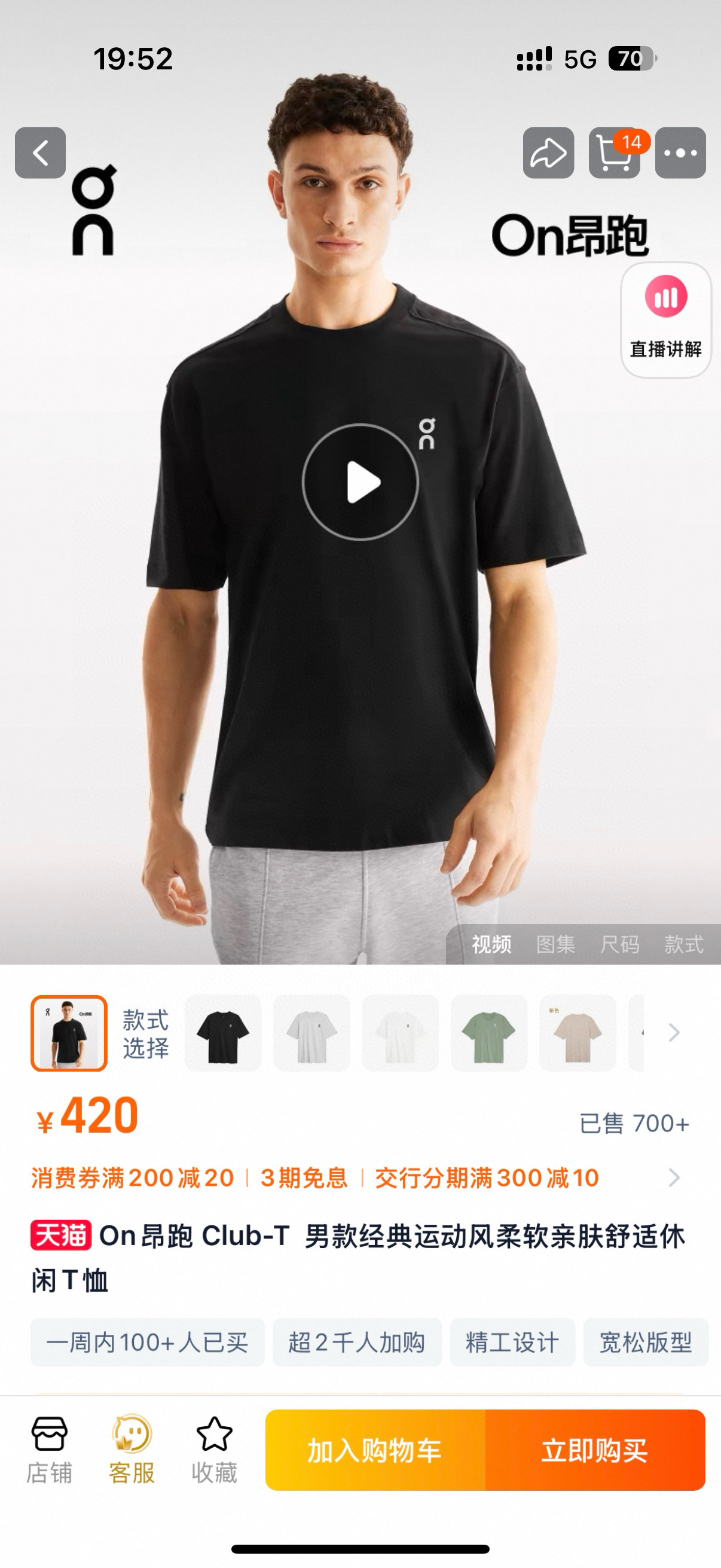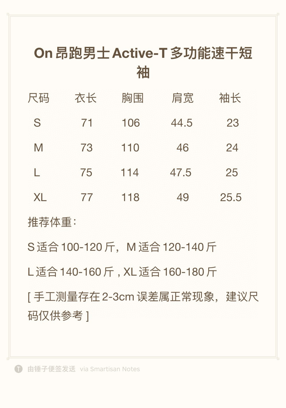 清仓速干短袖G网售价420软妹币!!on昂跑速干Active-T多功能短袖T恤