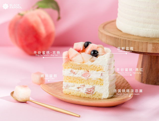 伊势鸡蛋、白砂糖、低筋粉、蛋白粉、大豆油、爱乐薇马斯卡波尼稀奶油、新鲜水蜜桃、蓝莓