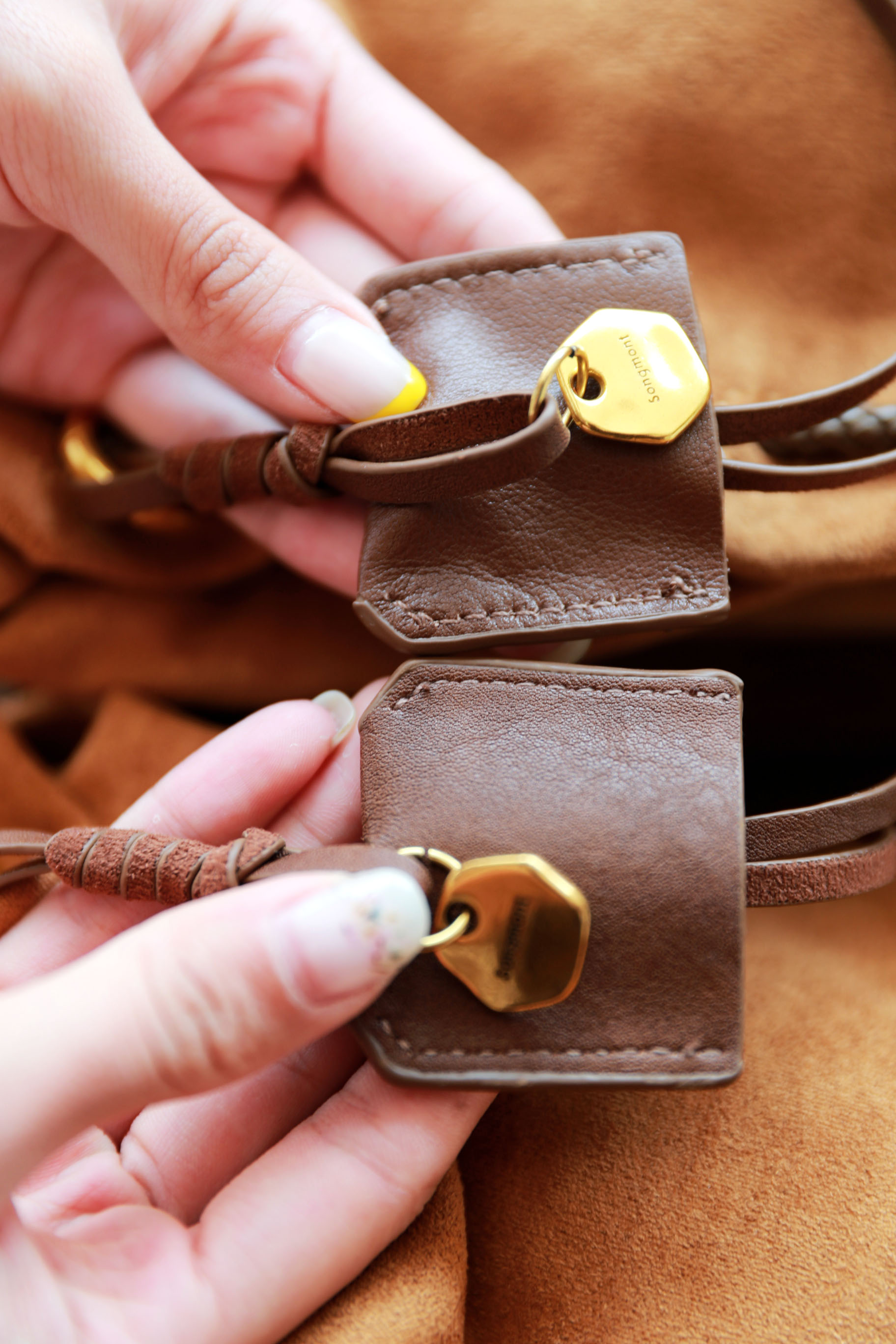 澳洲小牛皮+麂皮拼接,烦尽经文驼包。大容量牛皮托特包包C032766